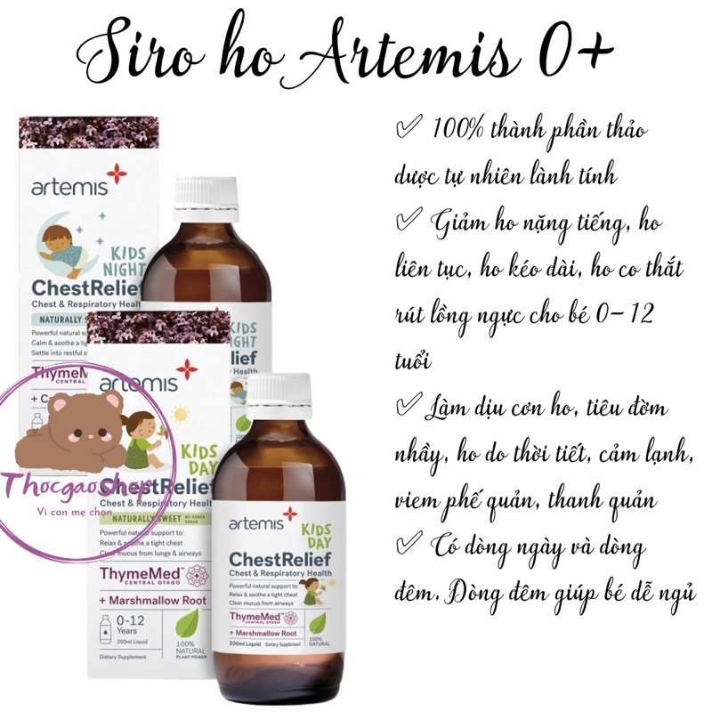 (Thóc Gạo Shop 89) Siro ho Artemis Chest relief ho ngày và đêm/Bronchi clear và tăng đề kháng cho bé