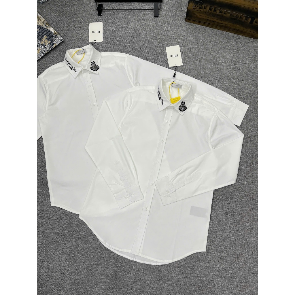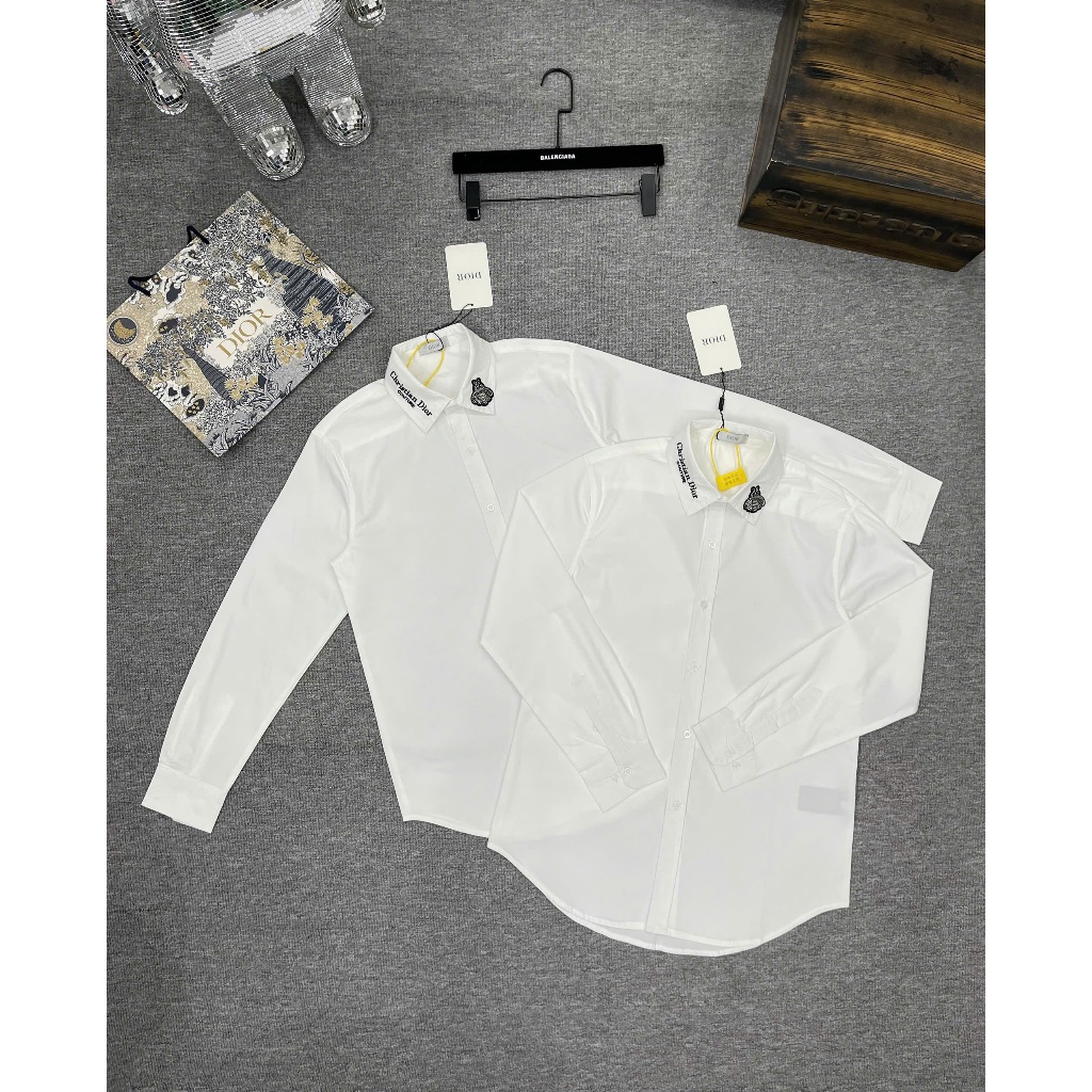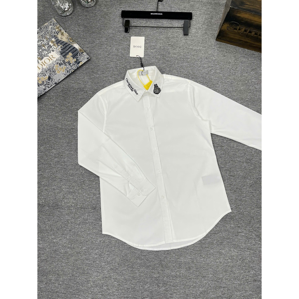 Áo Sơ Mi Trắng Nam Đì Ô Thêu Chữ Cổ Siêu Đẹp - Sơ Mi Nam Đì Ô Thêu Chữ Cao Cấp