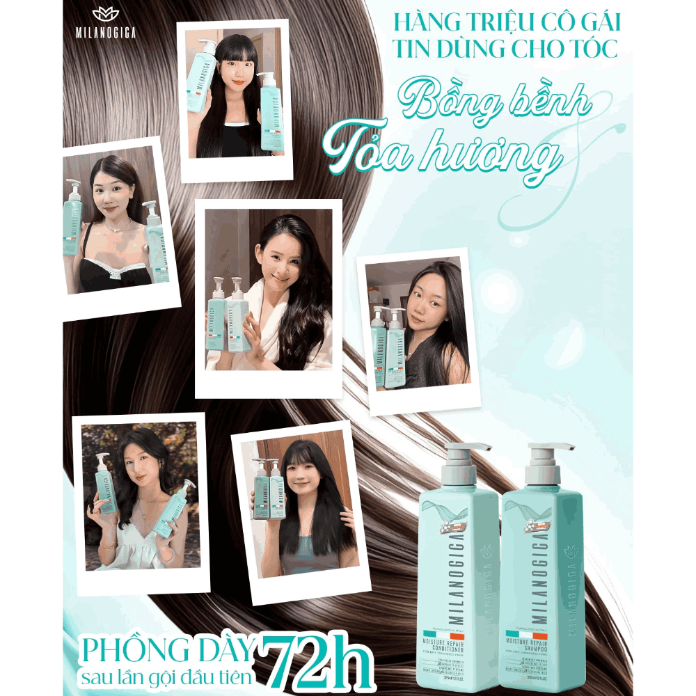 Bộ Dầu Gội Phục hồi hư tổn Milanogica 355ml/725ml phủ bóng siêu mềm mượt hương nước hoa