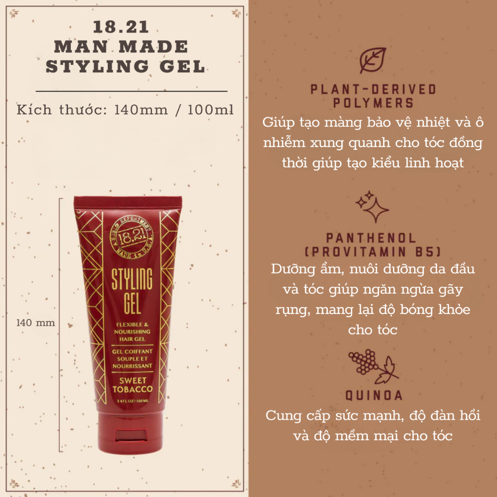 Gel Tạo Kiểu Tóc 18.21 Man Made Hair Styling Gel 100ml - Hương Sweet Tobacco