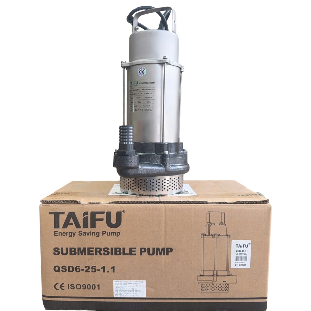 Máy bơm chìm nước sạch 1.1Kw (1.5HP) Thân, Nắp Inox 304 TAIFU QSD6-25-1.1 - Bảo hành 1 năm
