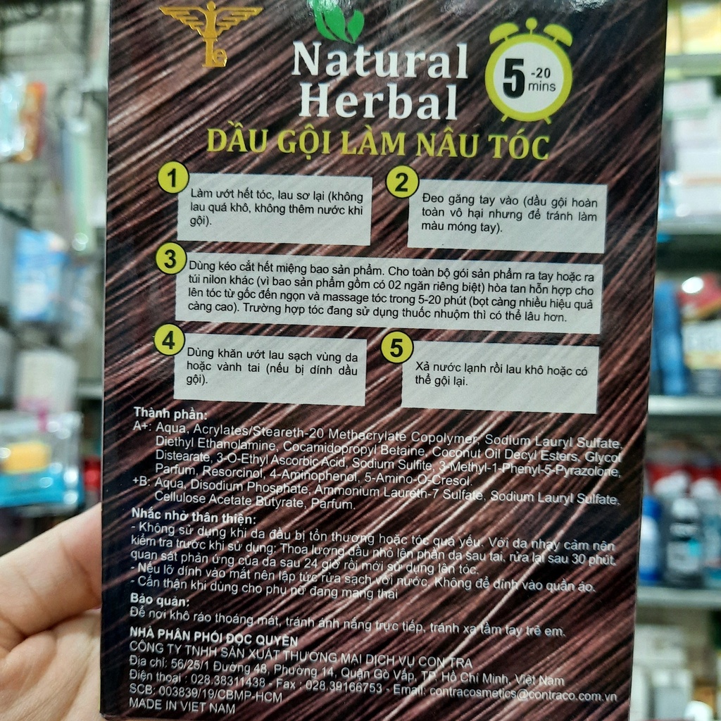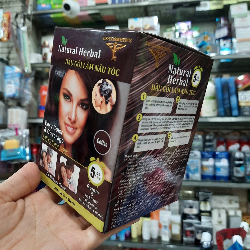 1 Hộp 10 gói dầu gội làm nâu tóc Natural Herbal (30ml/gói)