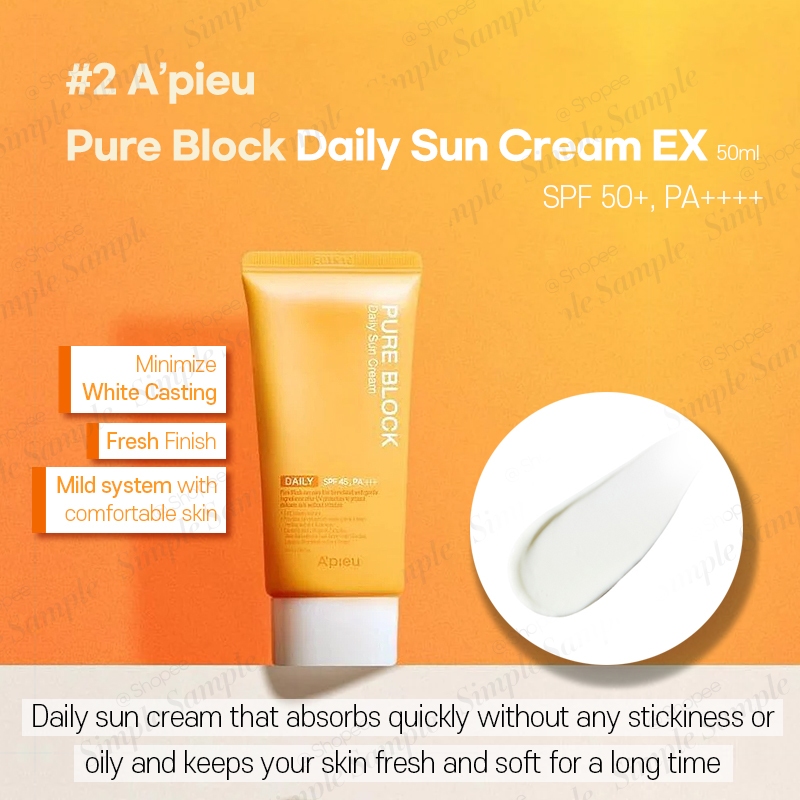 apieu Pure Block 50ml Kem chống nước hàng ngày tự nhiên Tone Up Aqua Sun Cream SPF50 PA + + +