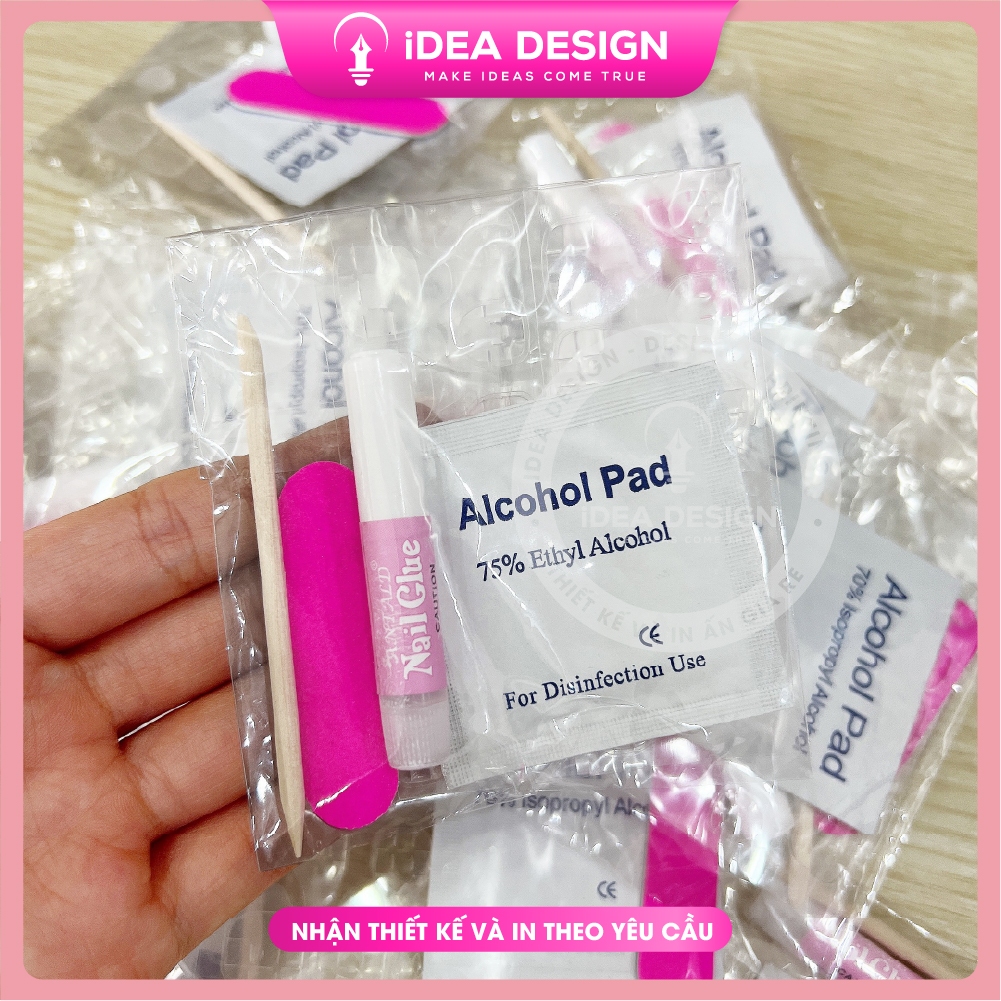 Set phụ kiện Nailbox tháo gắn móng giả 5 món (Miếng dán, bông tẩm cồn, que gỗ, dũa mini, keo) - Combo dụng cụ Nailbox