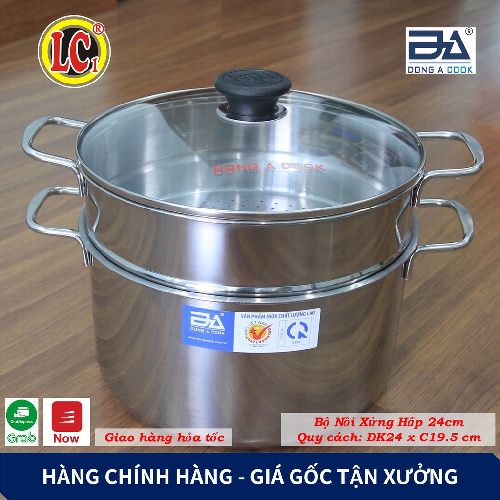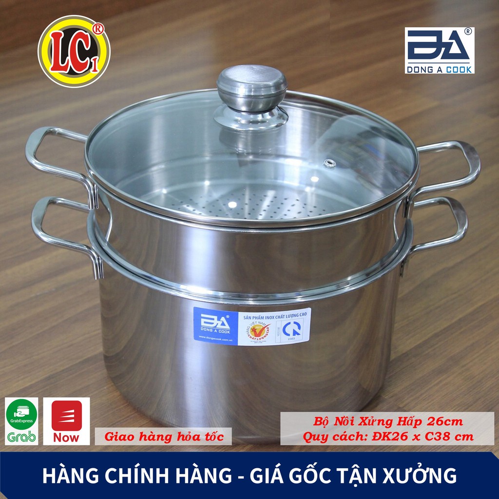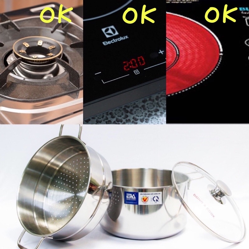 [Hàng Chính Hãng] Bộ Nồi Xửng Hấp Inox Đông Á 2 tầng - Dùng Cho Bếp Từ - Hấp Gà, Bánh Flan, Nấu Xôi"