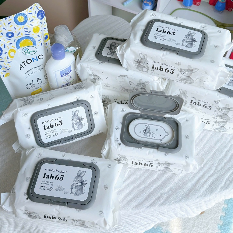 Khăn giấy ướt Momo Rabbit Hàn Quốc Lab65 gói 72 tờ có nắp siêu dày dặn