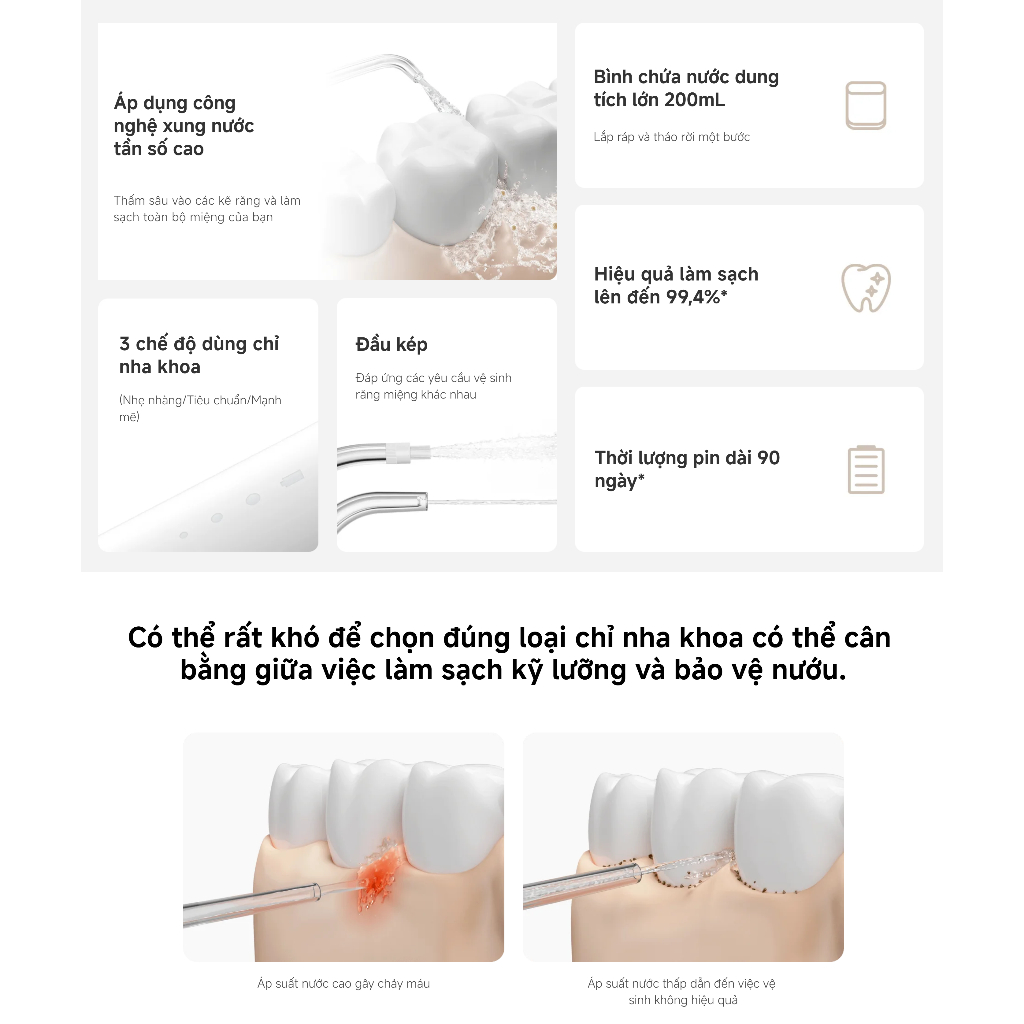 Máy Tăm Nước Xiaomi Water Flosser 2 - Vệ Sinh Răng Miệng - Hàng chính Hãng