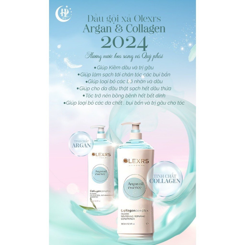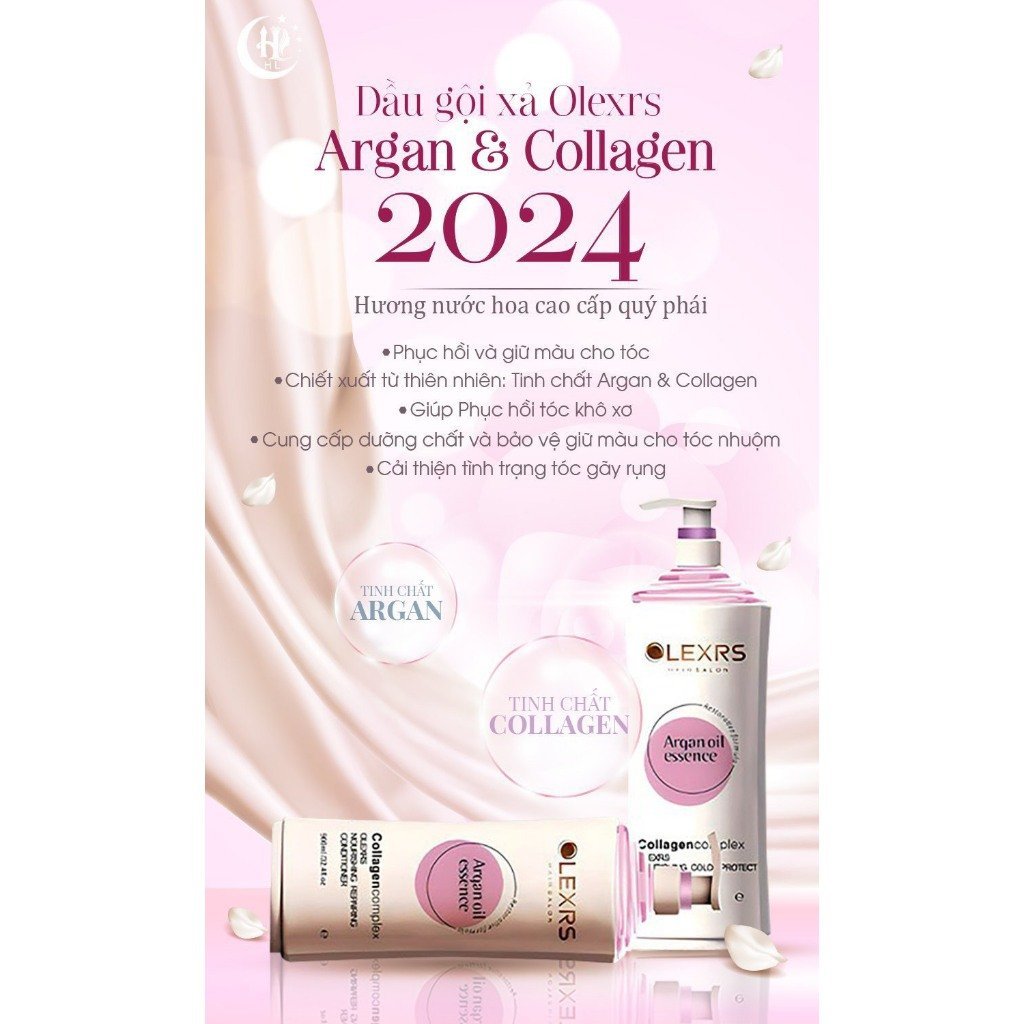 Cặp Dầu Gội Xả Olexrs+HairSalon Argan Oil Collagen Chính Hãng