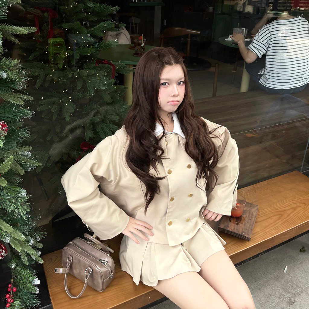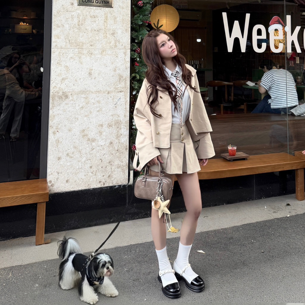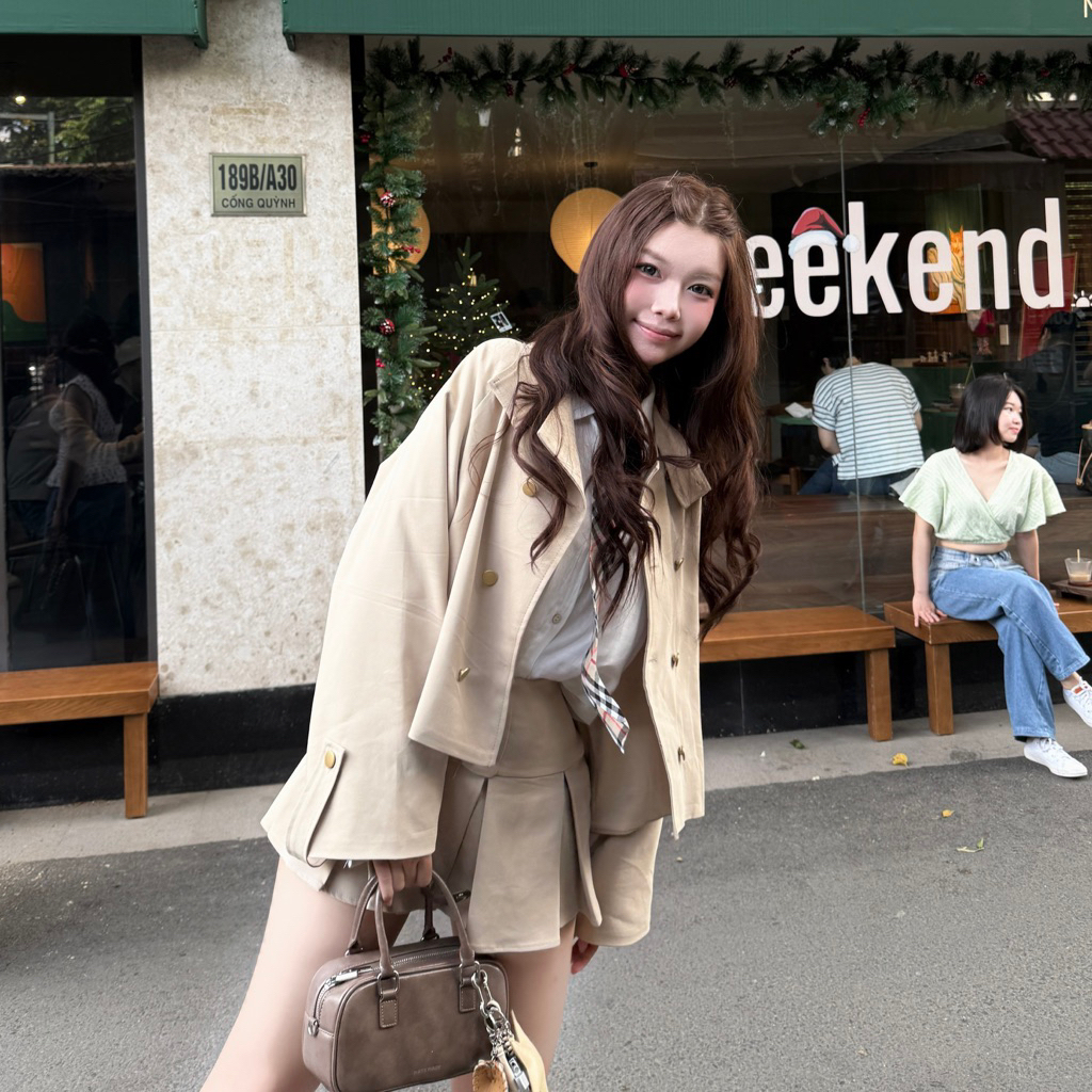 EMMA SET - Set áo khoác măng tô rộng phối chân váy xếp li năng động cá tính thiết kế Aube de Li