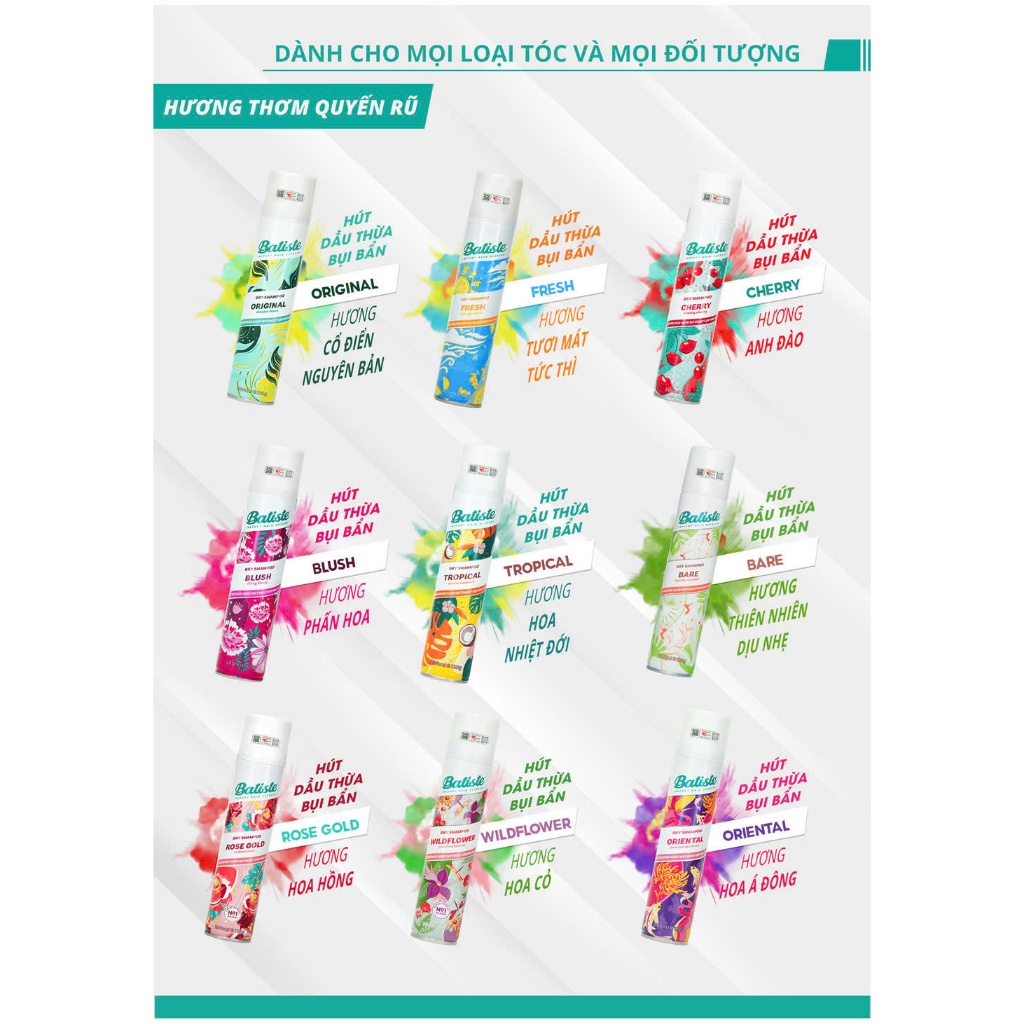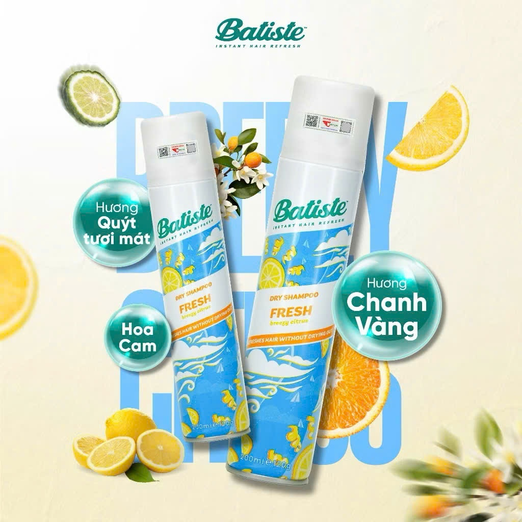[Đại lý chính hãng] Dầu Gội Khô Batiste Dry Shampoo 200ml kiềm dầu hương hoa cỏ