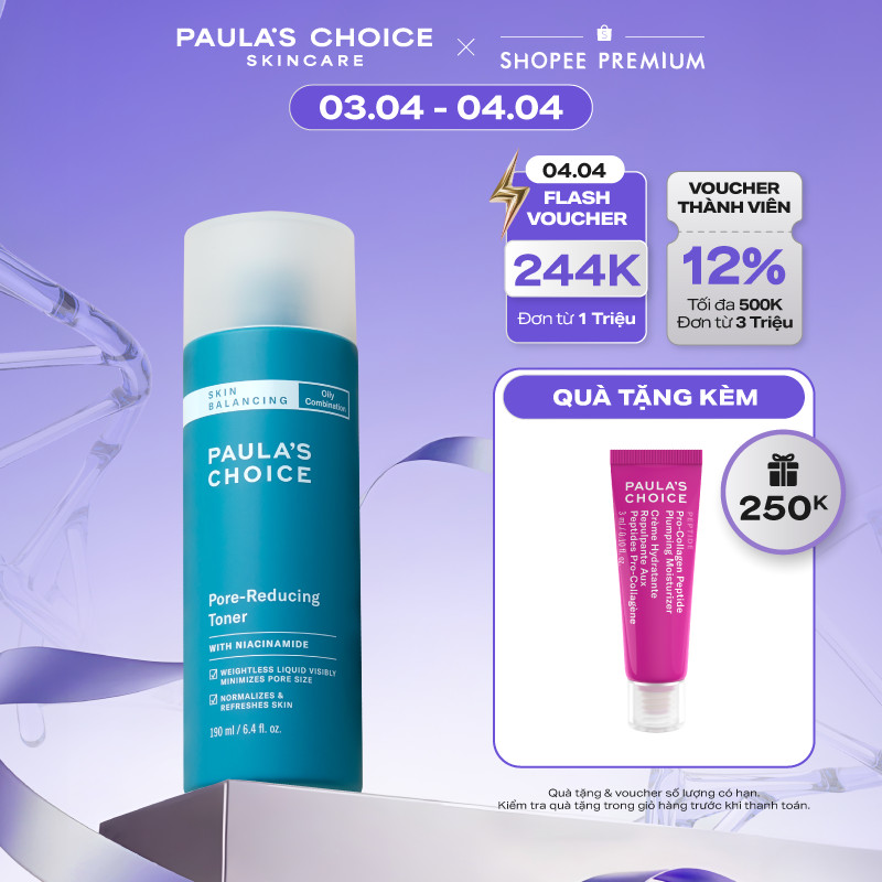 Nước cân bằng độ ẩm và thu nhỏ lỗ chân lông Paula's Choice Skin Balancing Pore-Reducing Toner 190ml 1350