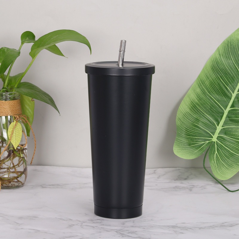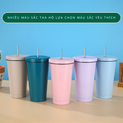 Ly giữ nhiệt 750ml Basic kèm ống hút chất liệu inox 304 giữ nhiệt, cốc uống nước kèm ống hút inox