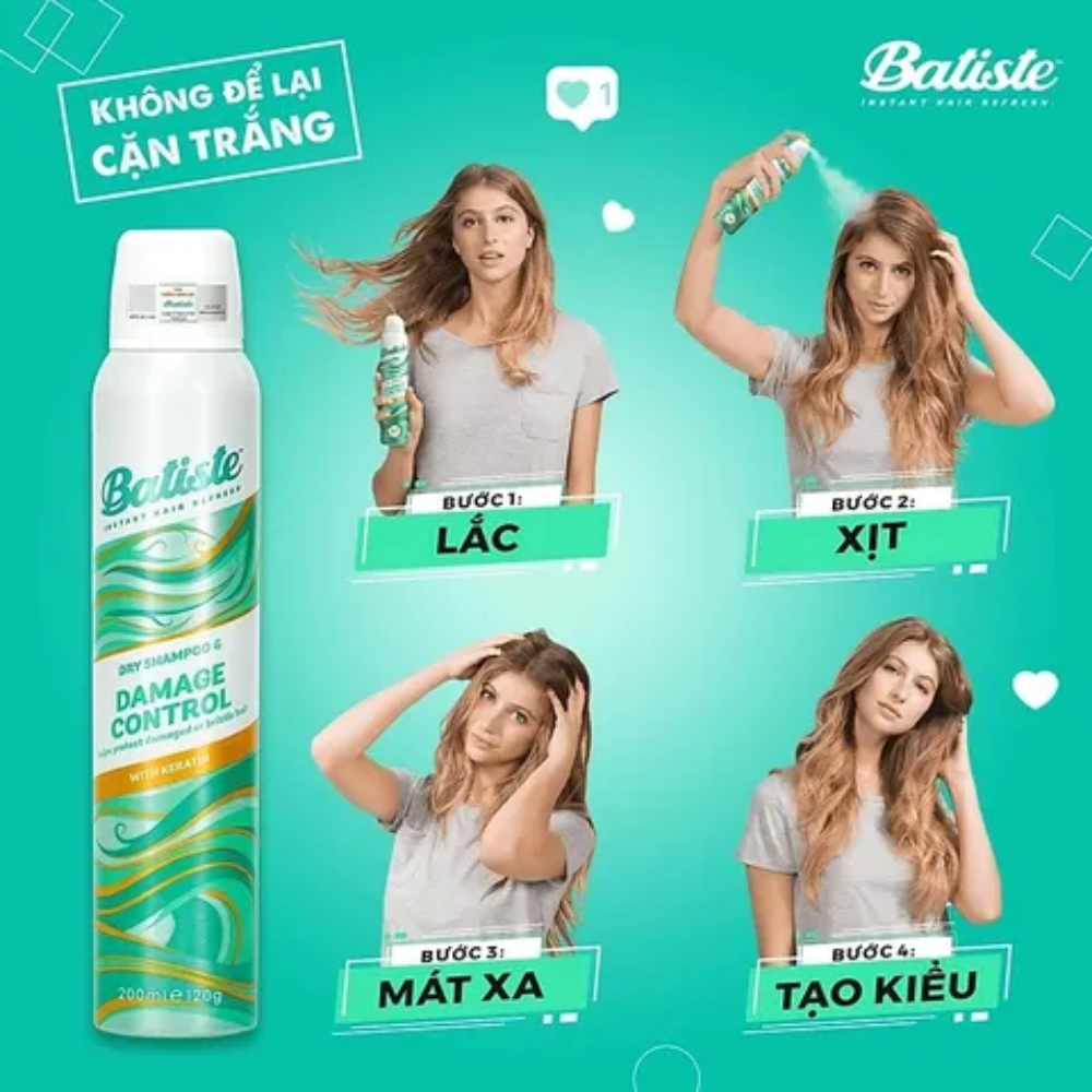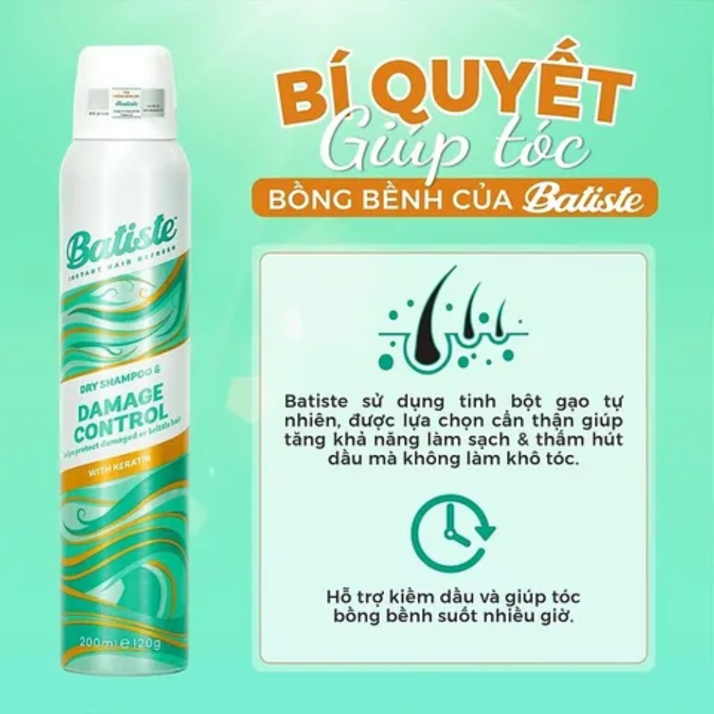 Dầu Gội Khô Batiste Dry Shampoo 200ml Loại Dưỡng - Xịt gội đầu khô giảm bết tức thì