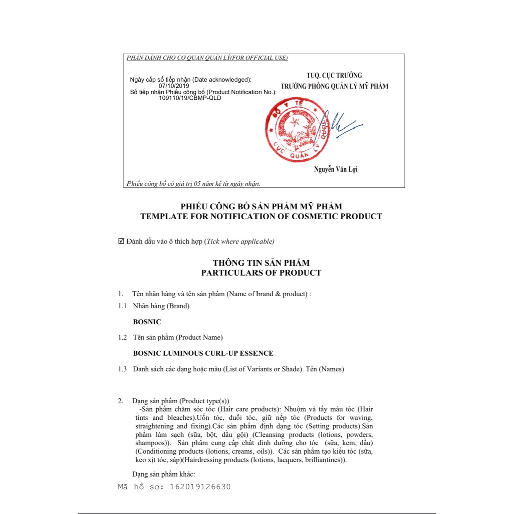 Dưỡng Tạo Lọn Tự Nhiên Dành Cho Tóc Uốn - Luminous Curl Up Essence BOSNIC 250ML