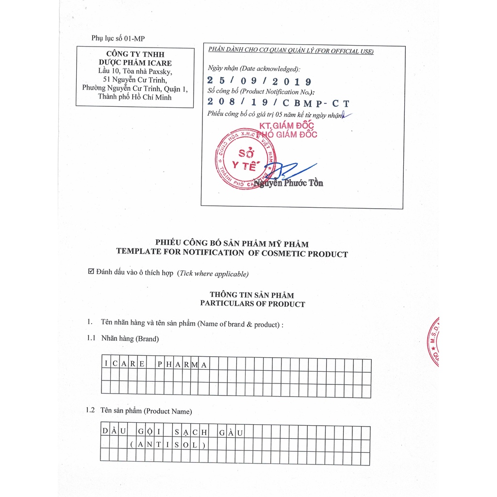 Combo 02 Chai Dầu Gội Hỗ Trợ Giảm Gàu Antisol iCare Pharma
