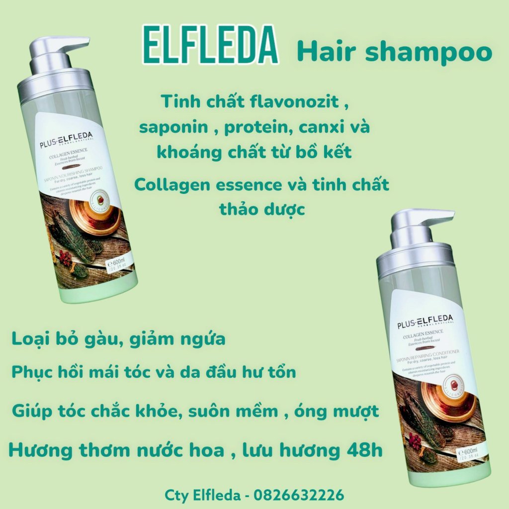 Dầu Gội Xả Thảo Dược Bồ Kết Chống Rụng Tóc Collagen ESSENCE PLUS ELFLEDA 600MLX2 _ Mei
