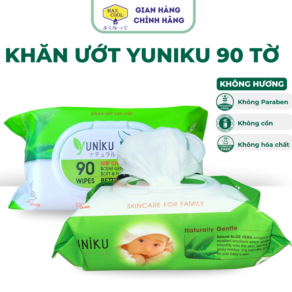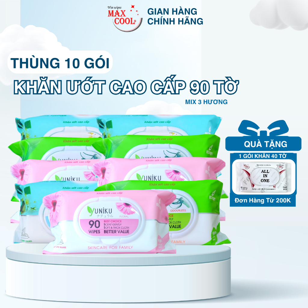 Combo 10 gói khăn ướt Yuniku 90 tờ mix không hương, hương lài và hương phấn