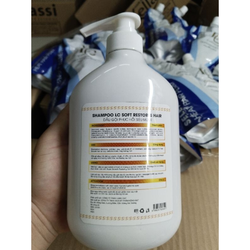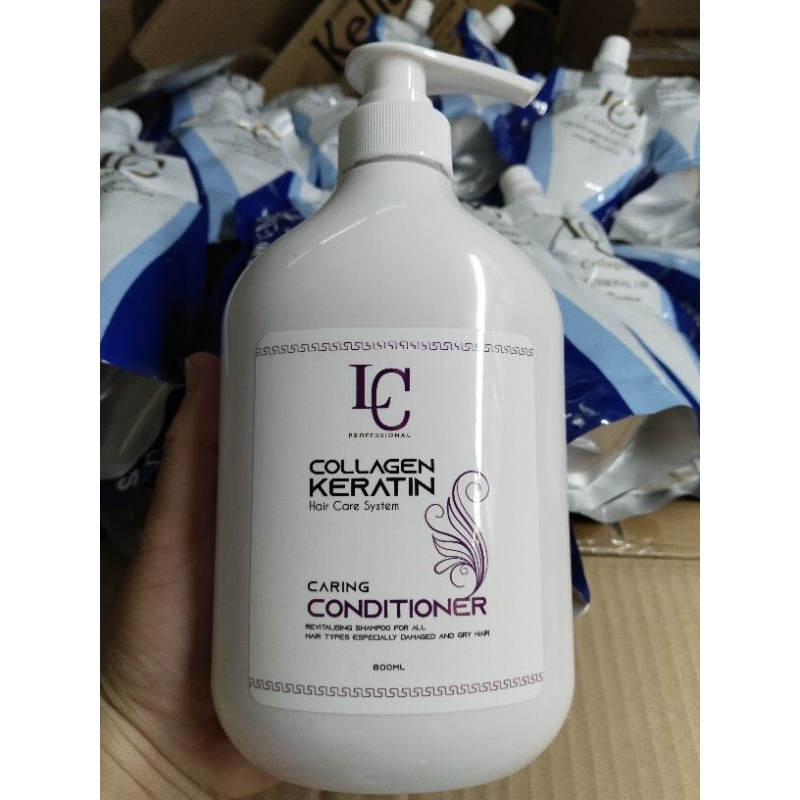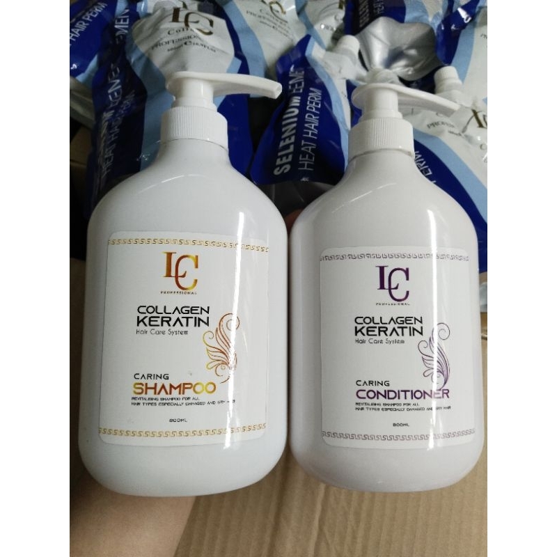 (Tặng kèm mũ hấp) Bộ gội xả LC 800ml COlLAGEN KErRATTIN Phục hồi giảm rụng trị gàu và dầu