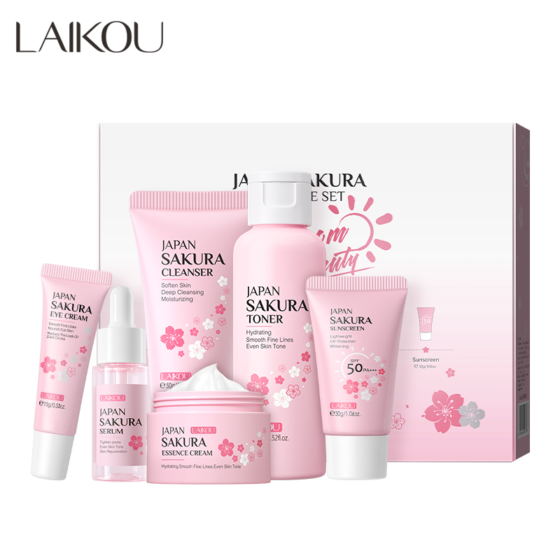 [Bộ chăm sóc da năm mới] LAIKOU Sakura 6 chiếc - Dưỡng ẩm, làm sáng, mịn màng, đều tông màu, SPF