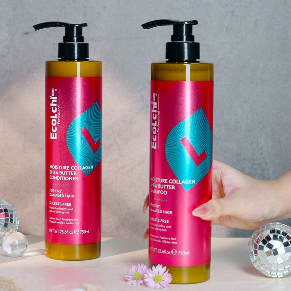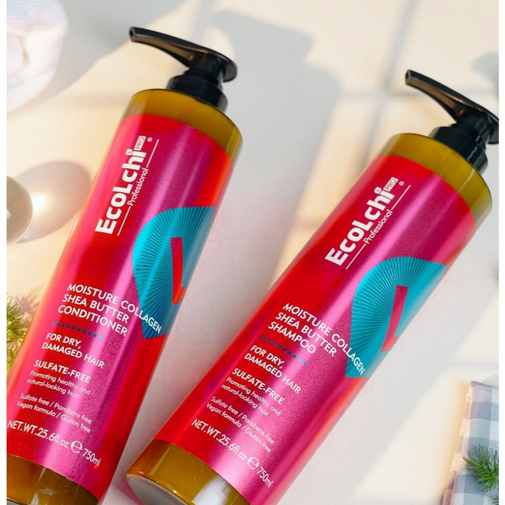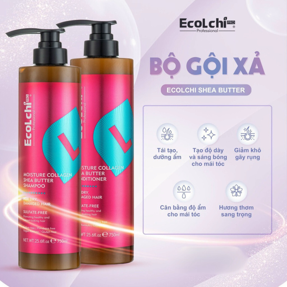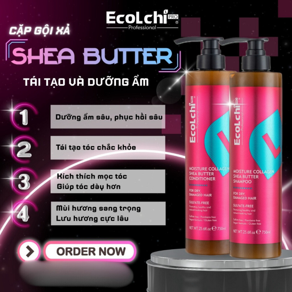 Cặp gội xả EcoLchi Shea Butter 750ml phục hồi tóc yếu, khô xơ từ gốc tới ngọn hương thơm nước hoa