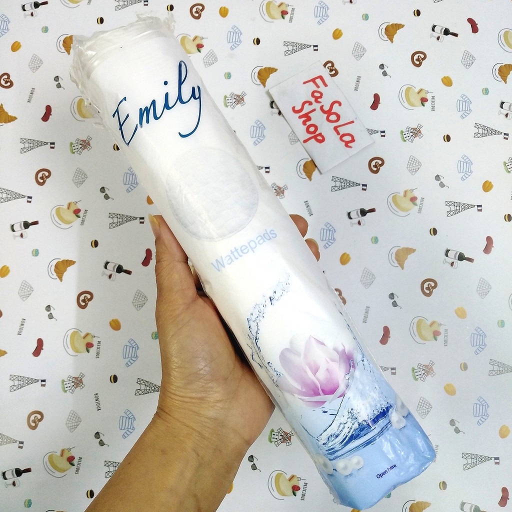 Bông tẩy trang EMILY 120 miếng Đức wattepads cotton pads mụn bụi bẩn mềm mịn tròn nước hoa hồng