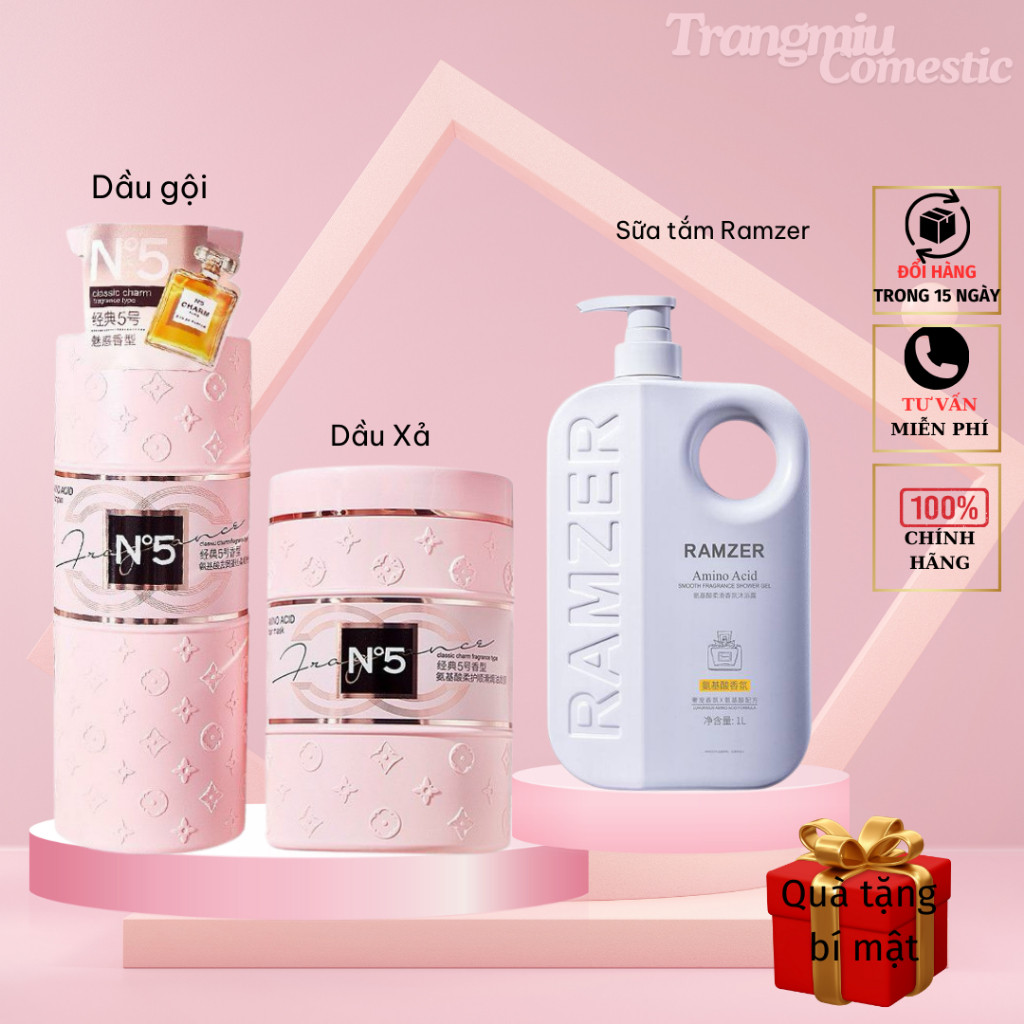 Combo sữa tắm dầu gội, Cặp Dầu Gội Xả Nước Hoa nữ N5 1600ml+ 1 Chai Sữa Tắm Ramze Trắng Da 1000ml