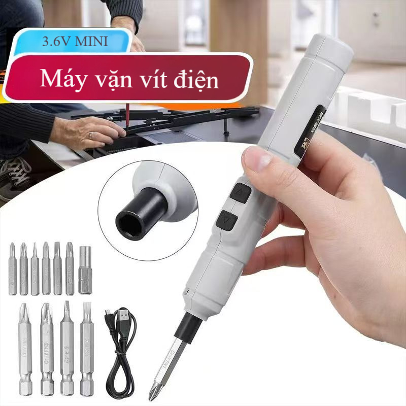 Bộ dụng cụ điện đa năng không dây khoan/vặn vít mini 3.6V, sạc pin, 12 mũi đi kèm cho mọi nhu cầu.