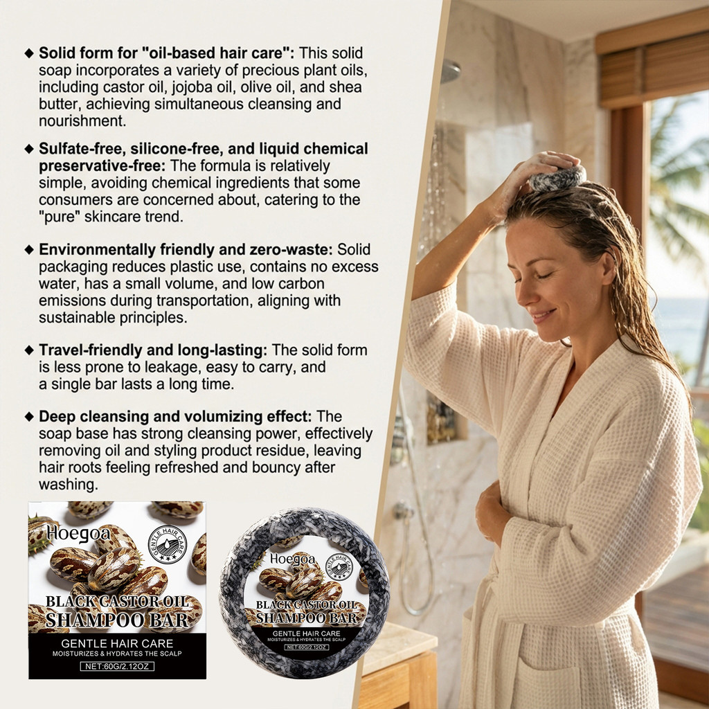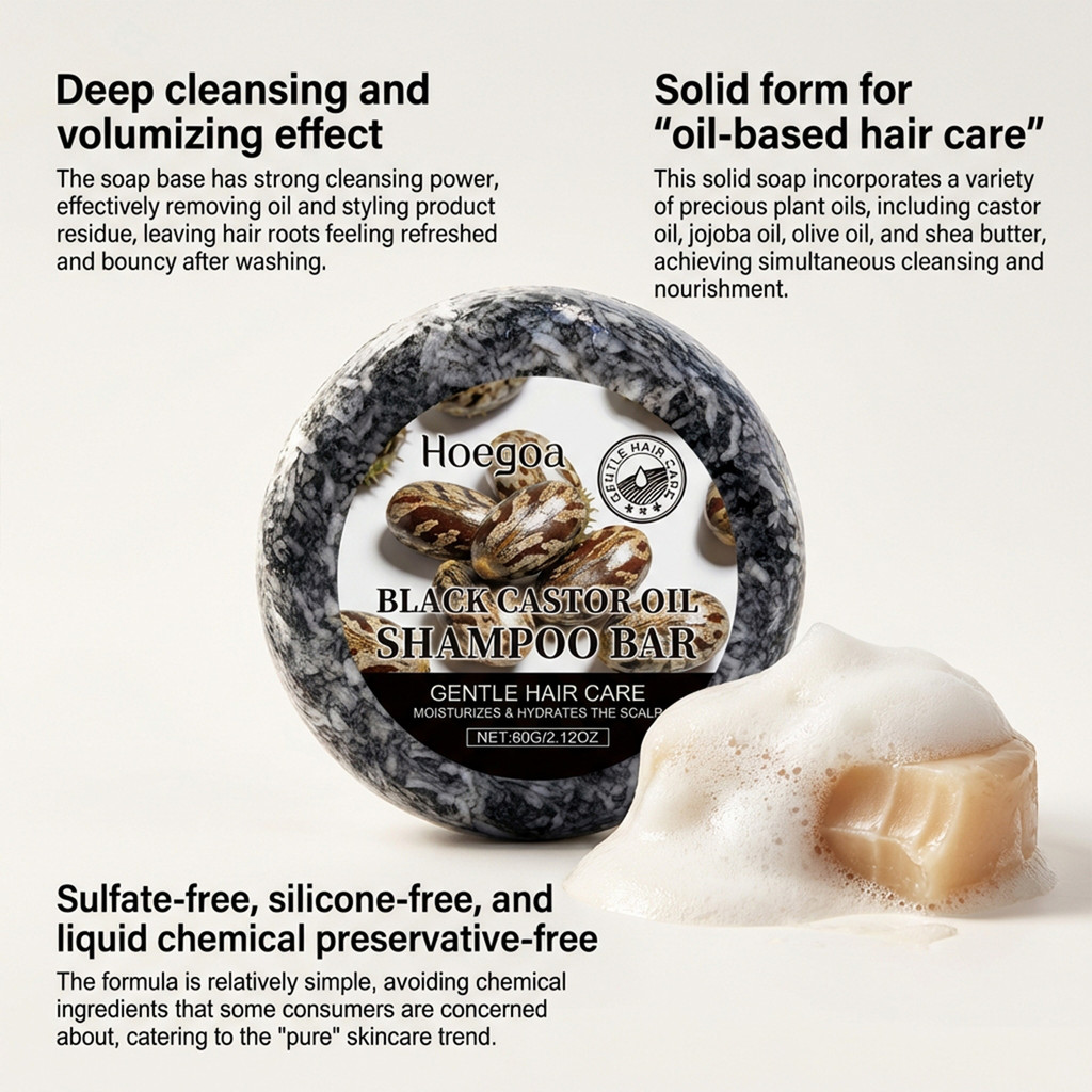 Dầu thầu dầu đen Thanh dầu gội nguyên khối 60g dành cho tóc xoăn khô Làm sạch nhẹ nhàng Dưỡng ẩm Hydrates Da đầu Làm mềm mịn Chăm sóc nuôi dưỡng tóc
