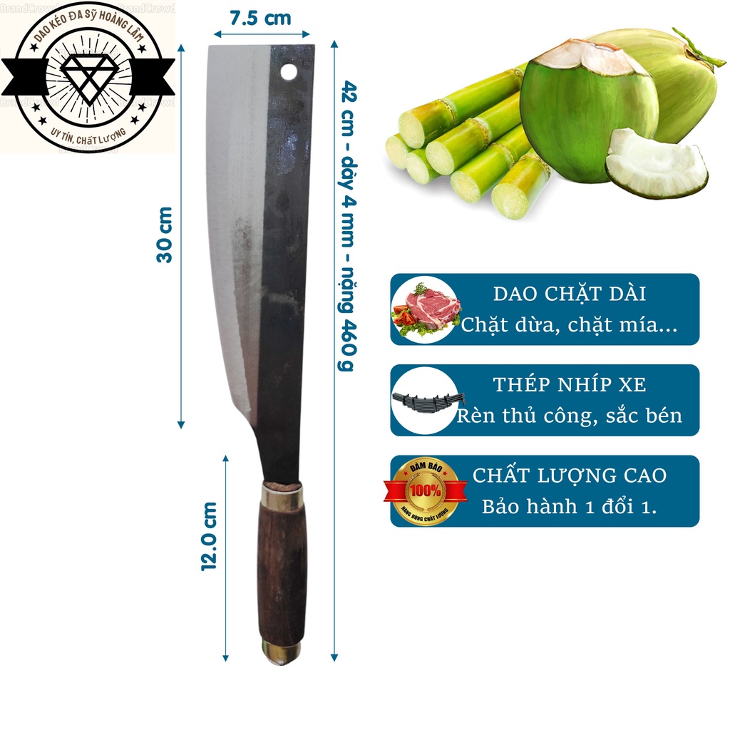 Dao chặt dừa, cây mía loại xịn được làm từ nhíp xe sản xuất làng nghề Đa Sỹ-HL0043