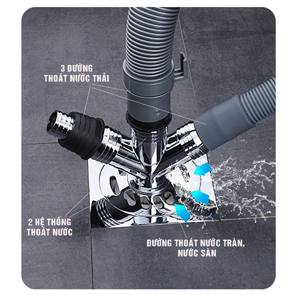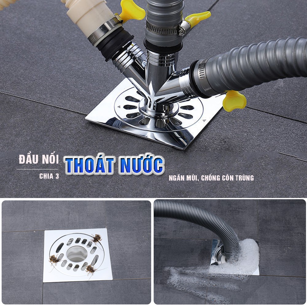 Bộ thoát nước máy giặt thoát nước thải chống mùi hôi, ngăn côn trùng lắp thoát sàn chia 3 Minh House