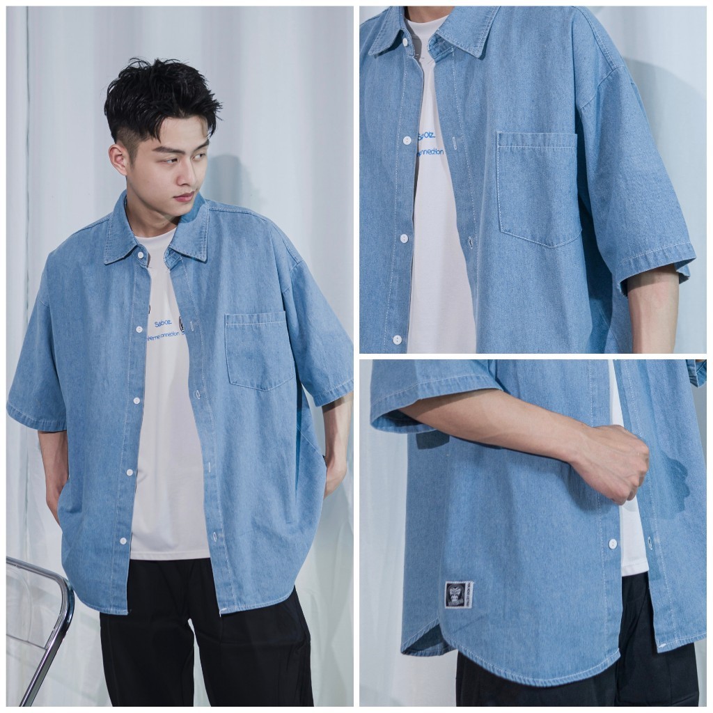 Áo sơ mi jean nam form rộng tay lỡ vải bò denim cao cấp phong cách Hàn Quốc pon.mens c06 a206 hà nội hcm