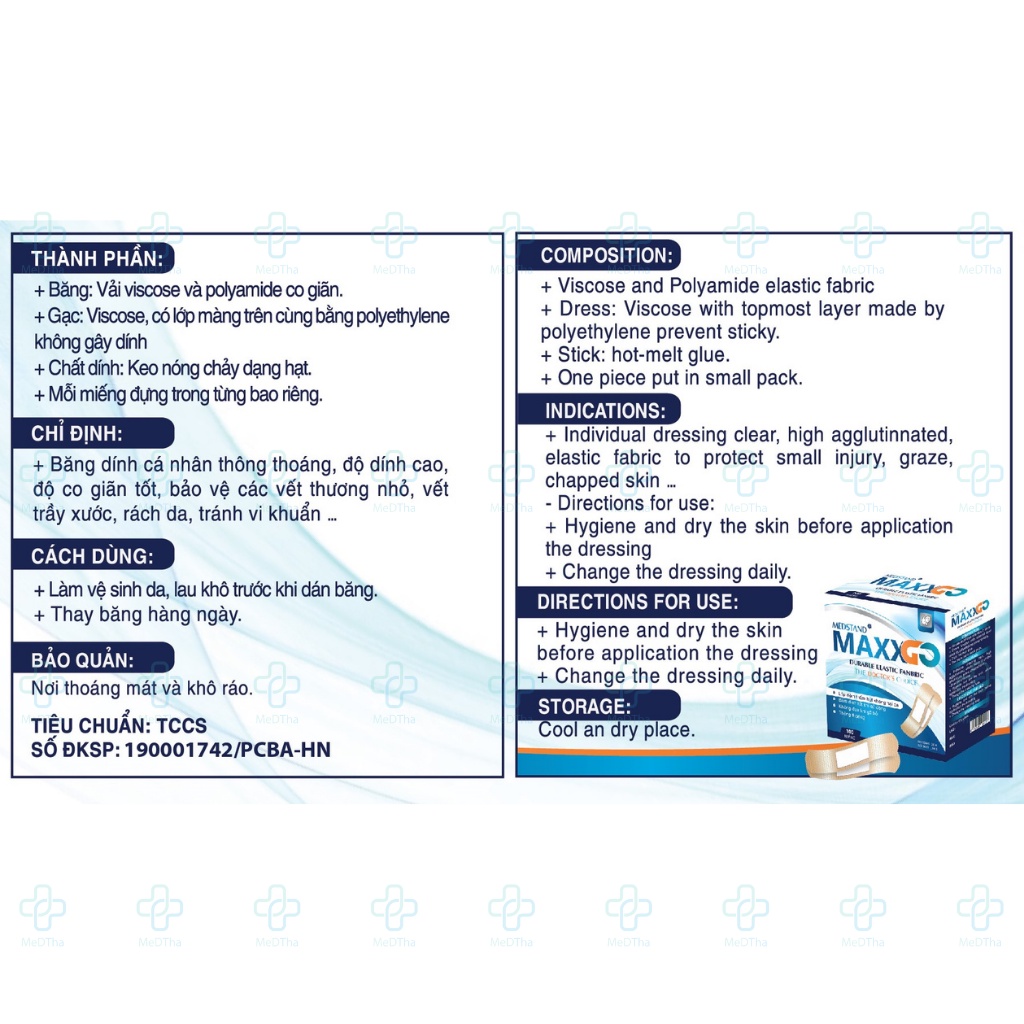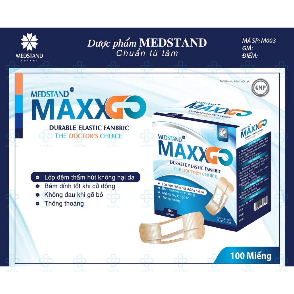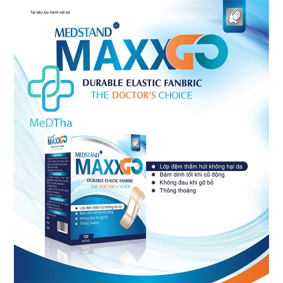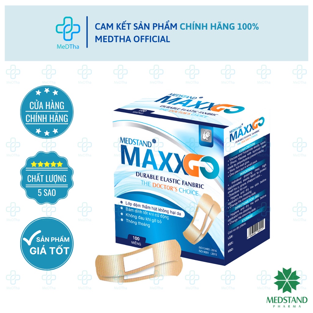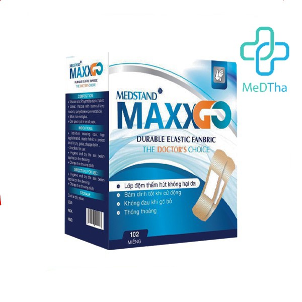 Băng cá nhân Maxxgo - Băng gâu Y tế, băng vết thương chất liệu vải độ dính cao (Hộp 100 miếng)