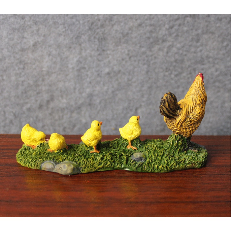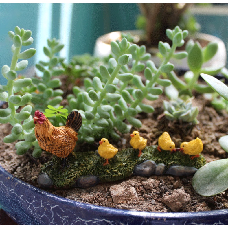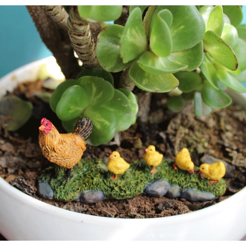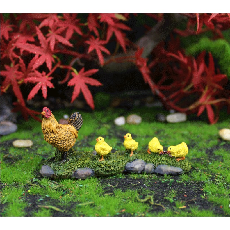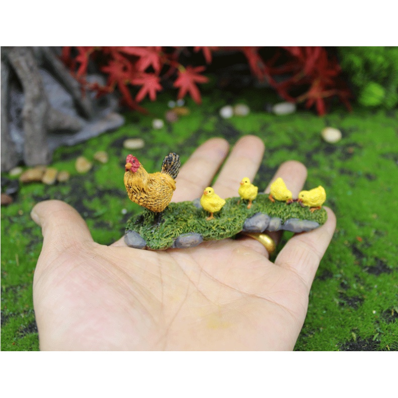 Mô hình tiểu cảnh dựng sẵn "Đàn gà con đi kiếm ăn" trang trí terrarium, DIY