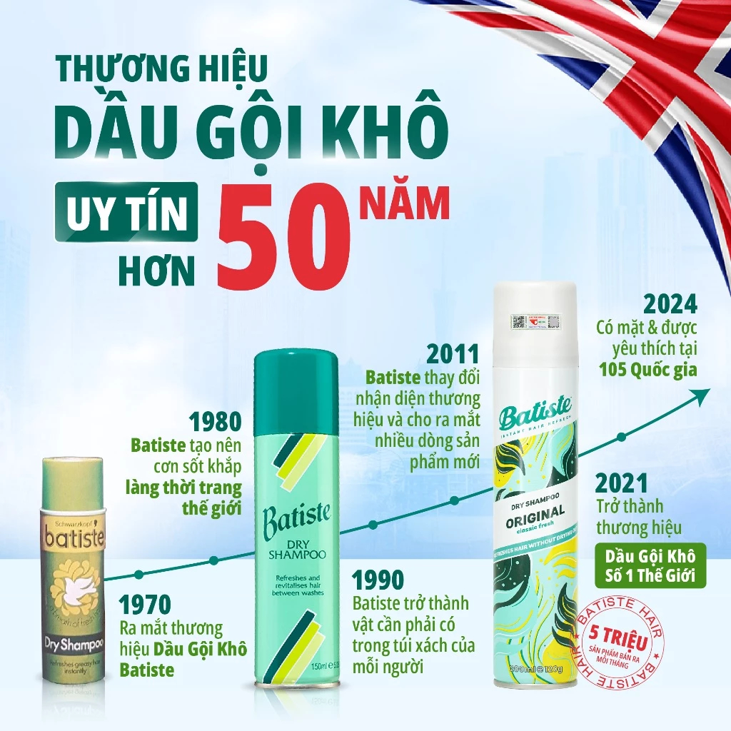 Dầu Gội Khô Batiste 200ML Chính Hãng Hàng Công Ty Hết Bết Dính Tóc Bồng Bềnh Tức Thì