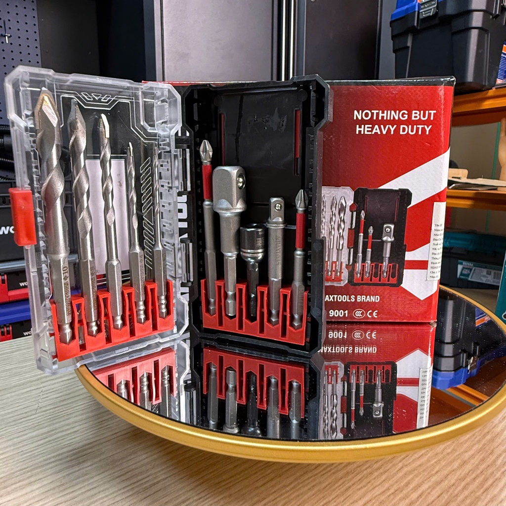 Bộ Mũi Khoan Đa Năng 10 Món AMAXTOOLS CBK8 3–10mm, Chuôi Lục Giác 1/4", Mũi Vít, Đầu Chuyển Bulong