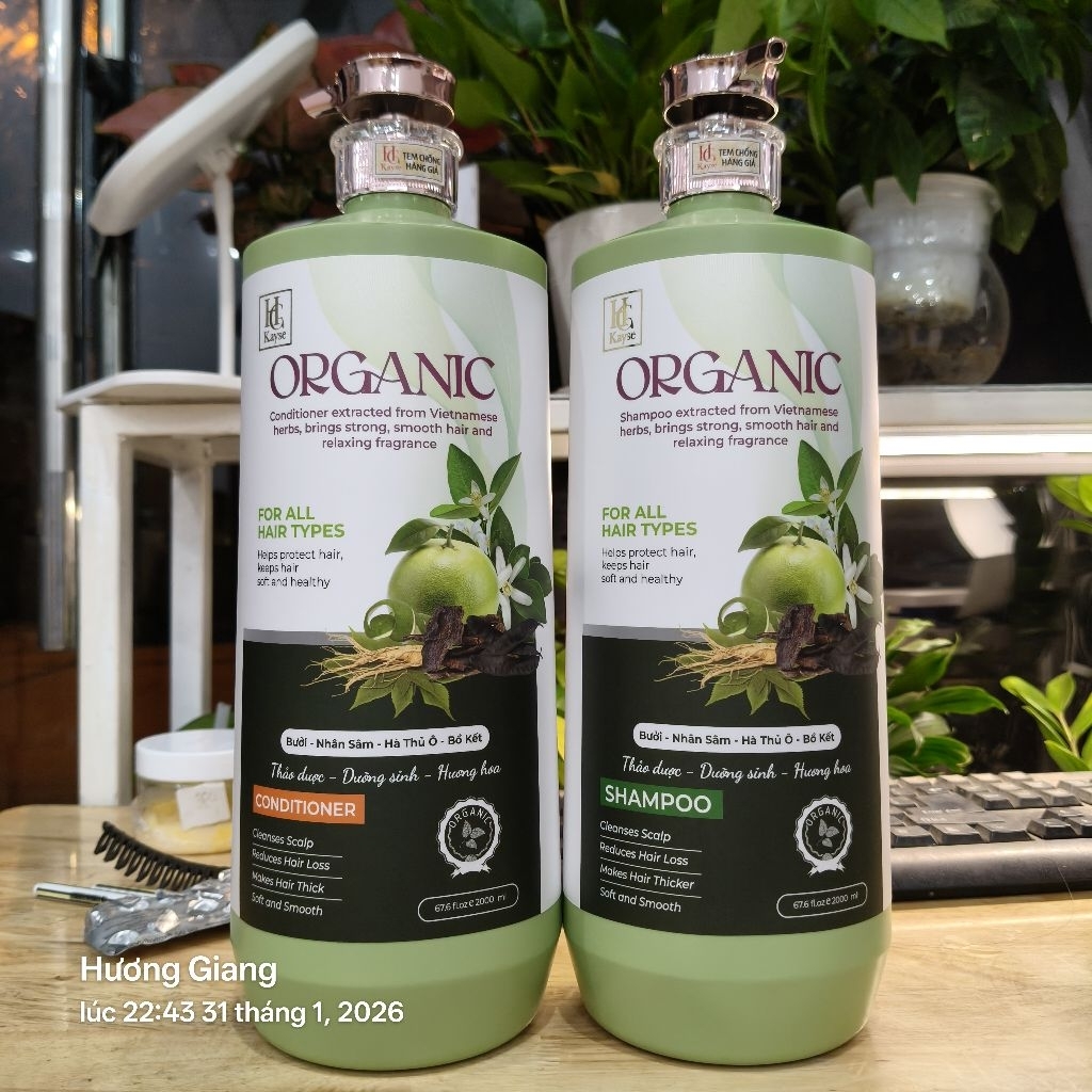 Cặp gội xả kayse organic thảo dược dưỡng sinh hương hoa bưởi, bồ kết,nhân sâm,hà thủ ô 2000ml phục hồi tóc khô xơ,hư tổn