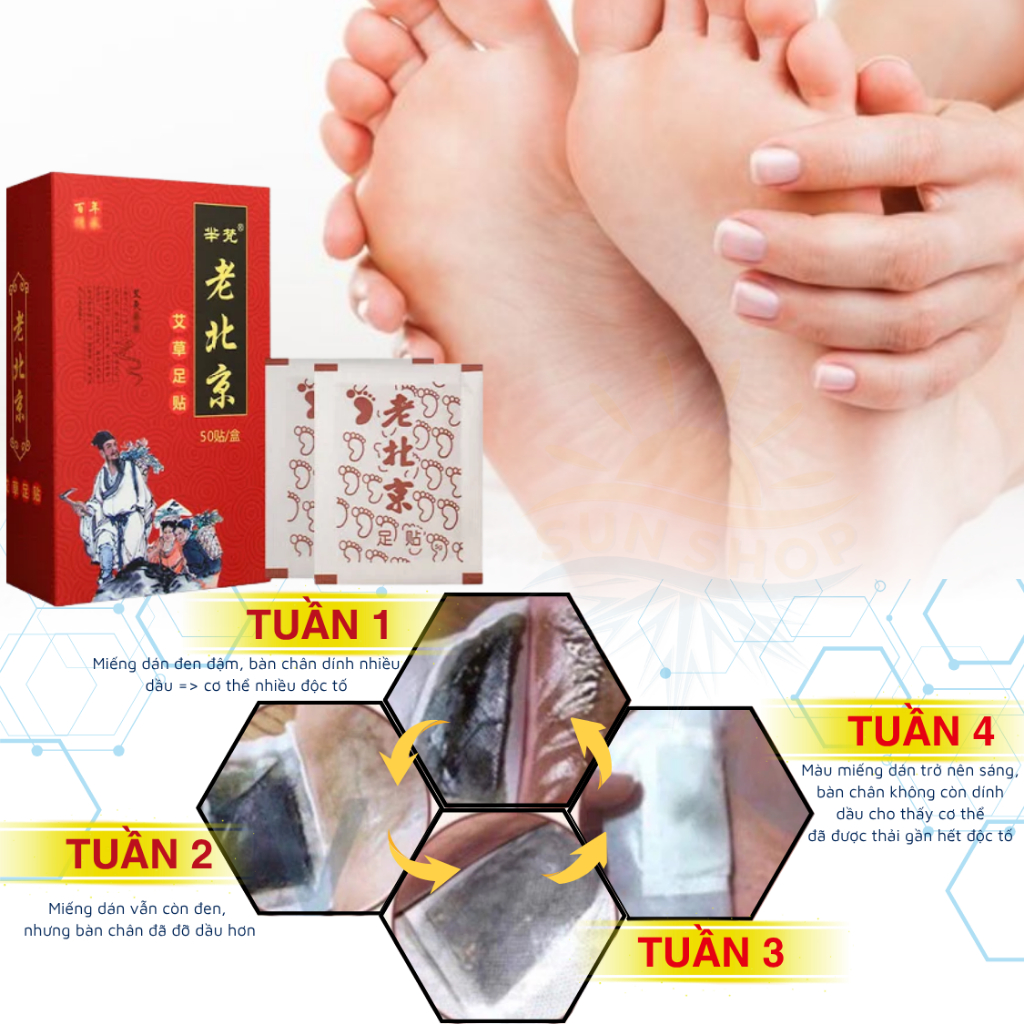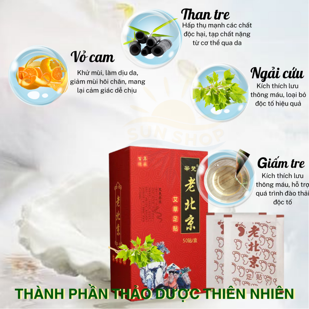 Miếng Dán Ngải Cứu Thải Độc Chân Bắc Kinh 50 Miếng – Thải Độc Tố, Ngủ Ngon Giấc, Lưu Thông Tuần Hoàn Máu | Sun Shop
