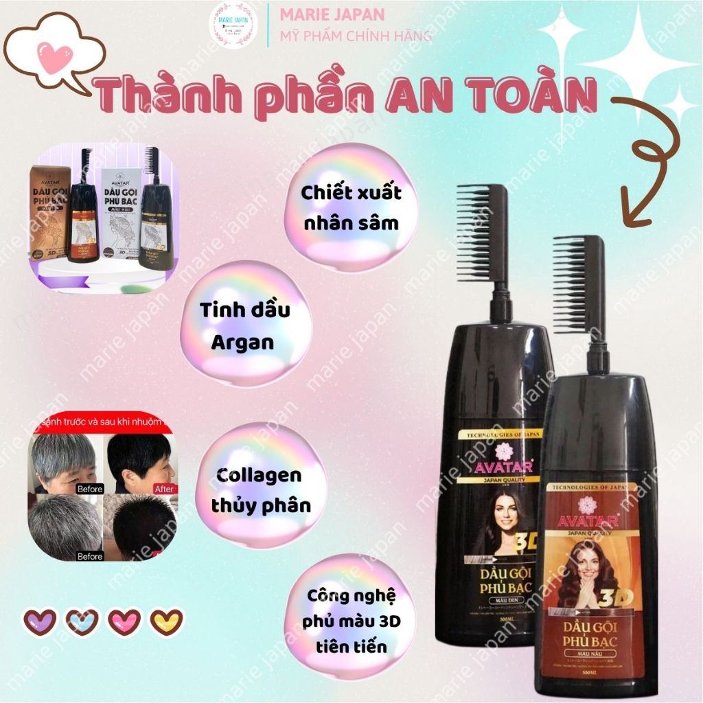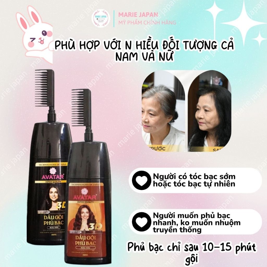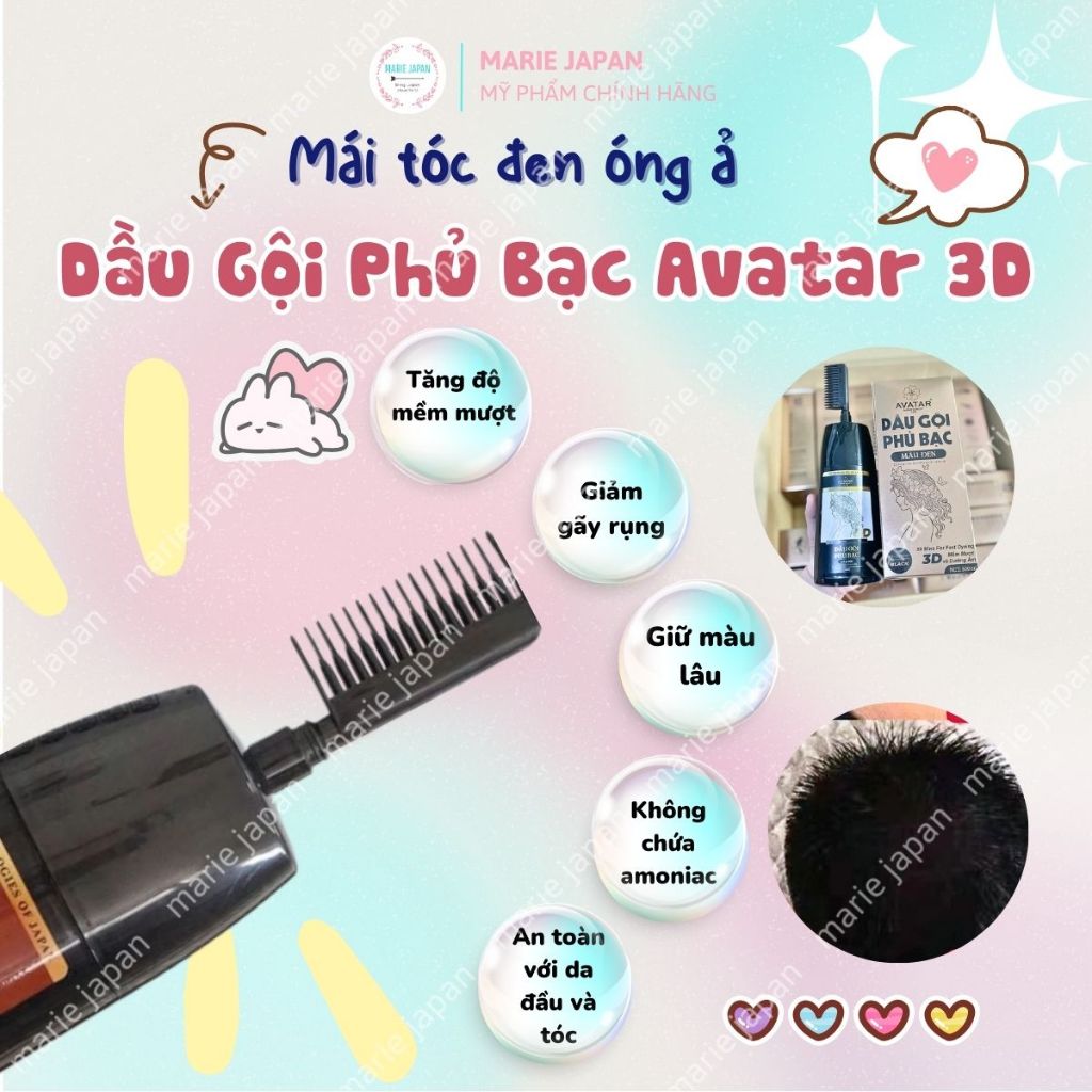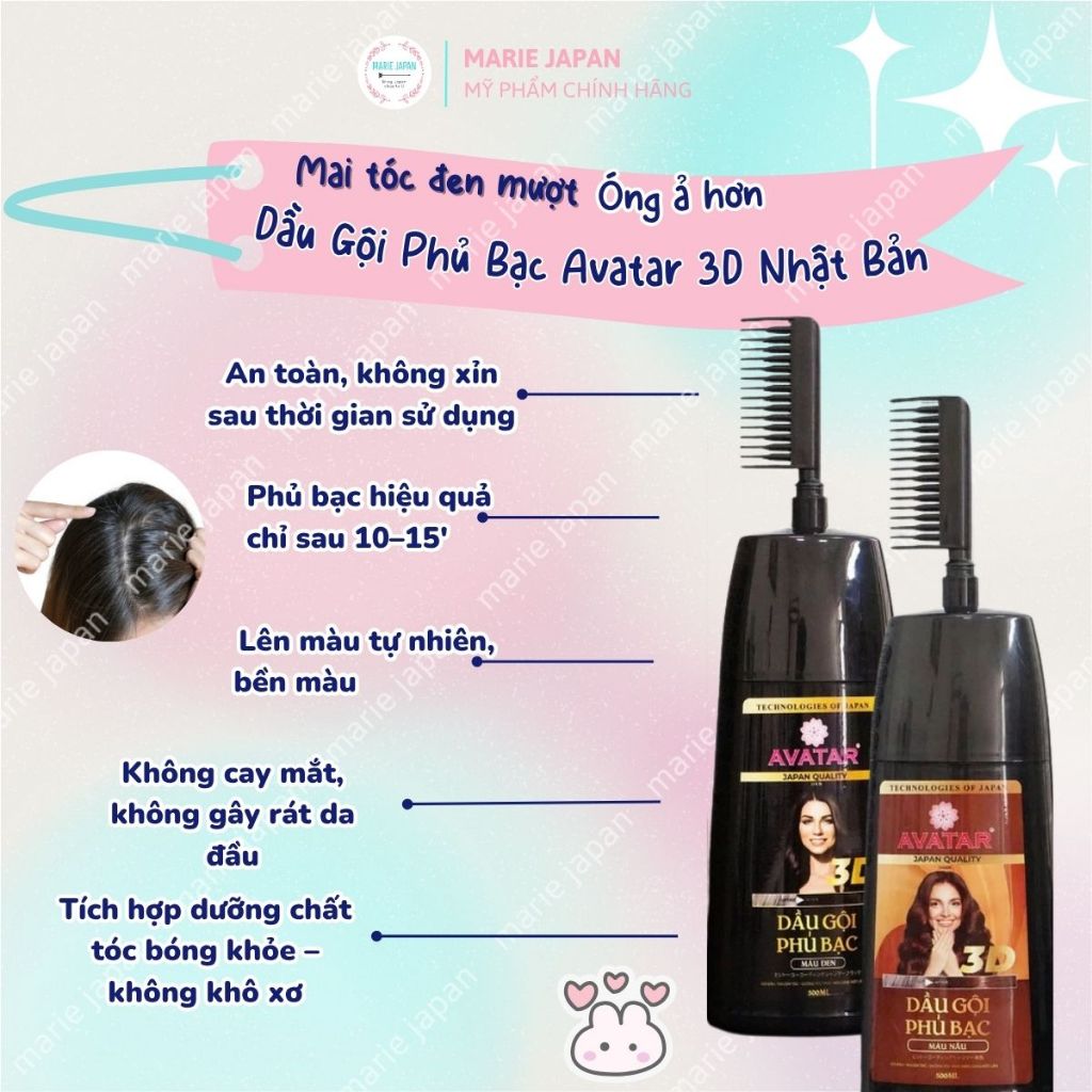 Dầu Gội Phủ Bạc Avatar 3D Nhuộm Tóc An Toàn Tiện Lợi Mái Tóc Óng Ả Tự Nhiên Nhật Bản 500ml
