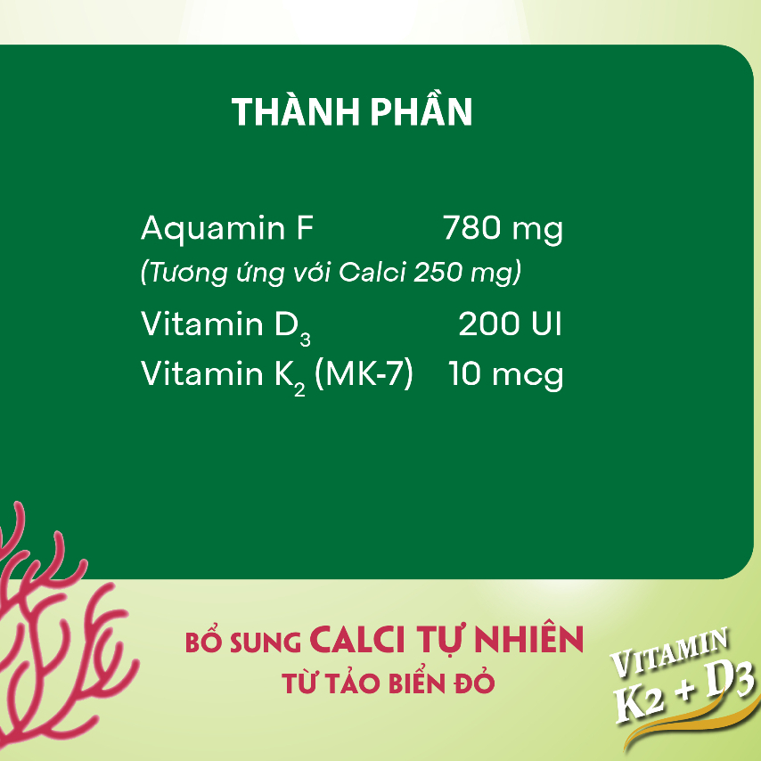 Canxi S E A C A N K2 Bổ Sung Canxi Tự Nhiên, Giảm Nguy Cơ Còi Xương, Loãng Xương Từ Tảo Biển Đỏ Hộp 60 Viên