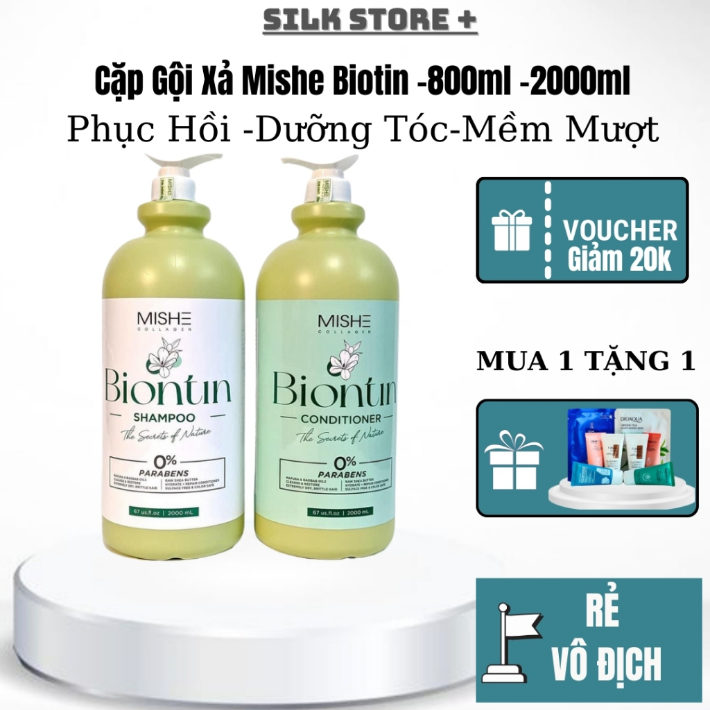 Dầu Gội Collagen Biotin Mishe 2000ml Silkstore+ Phục Hồi Hư Tổn Sạch Gàu Giảm Rụng Tóc Kích Mọc Tóc Lưu Hương Lâu