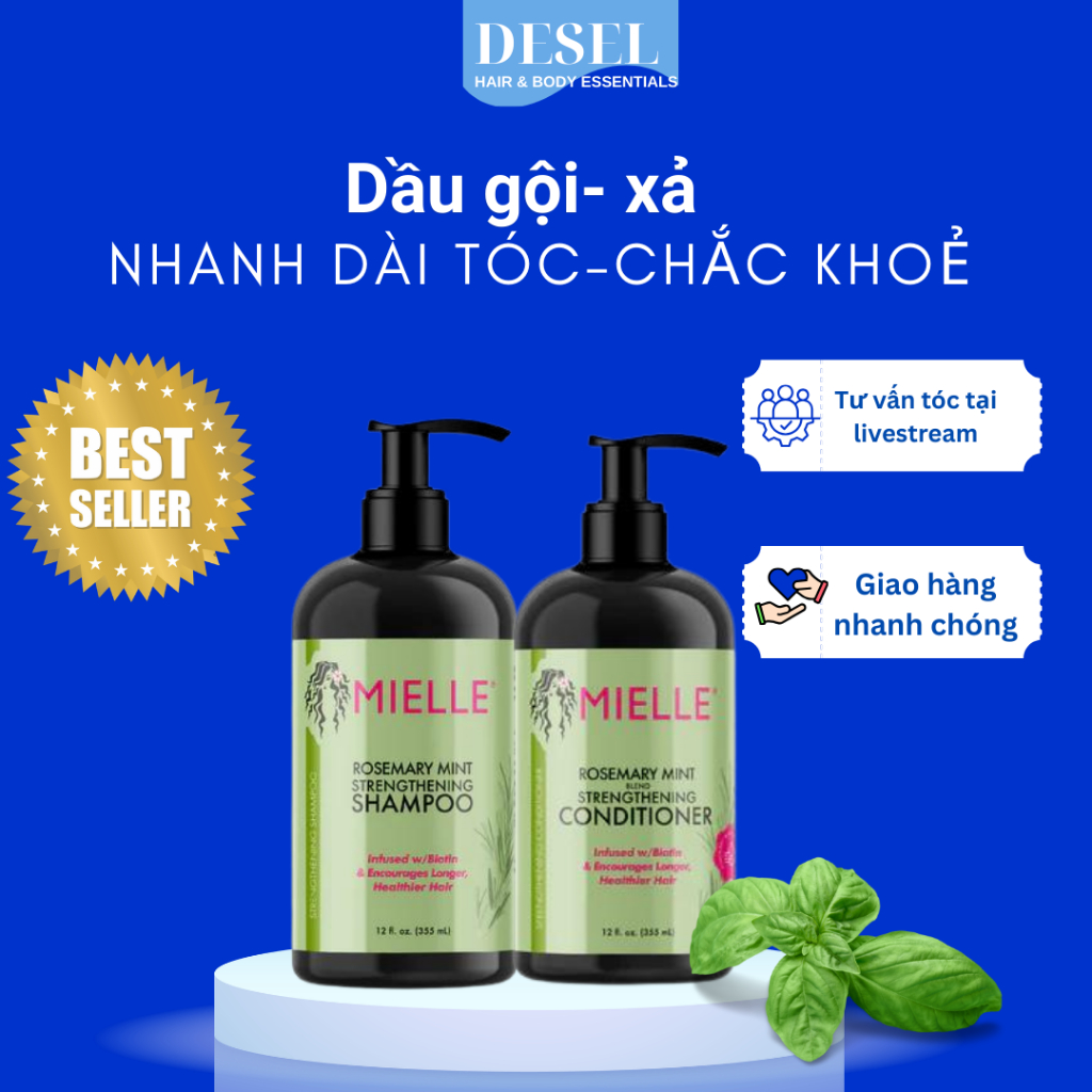 [DESEL] Cặp Dầu Gội Xả Mielle Organics Rosemary Mint Biotin Giúp Tóc Chắc Khỏe 355ml