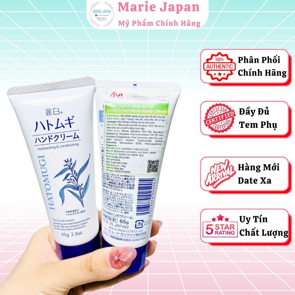 Kem tay Hatomugi dưỡng trắng mềm mịn da tay Hand Cream 65g Nhật Bản