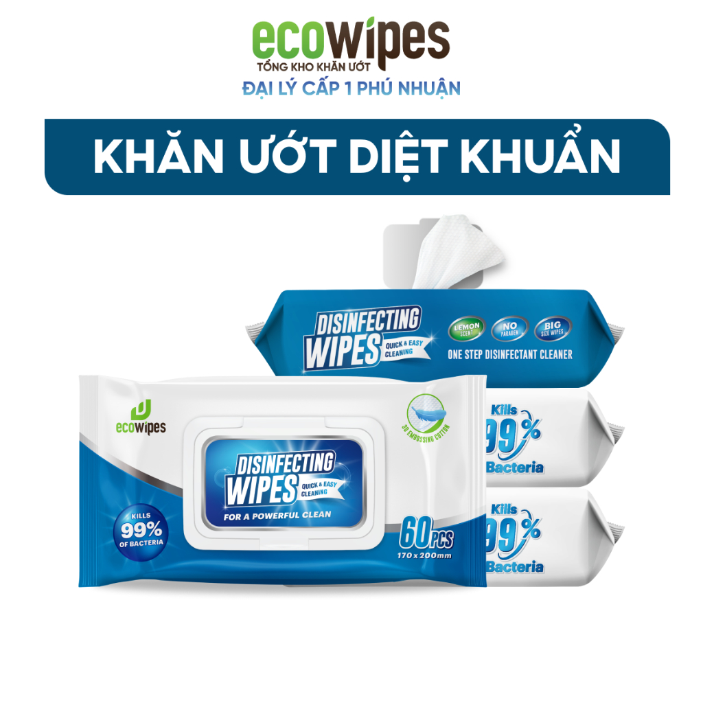 KHO PHÚ NHUẬN_Combo 03 Gói Khăn Ướt Diệt Khuẩn Disinfecting Wipes Hương Chanh Sả Diệt 99% Vi Khuẩn