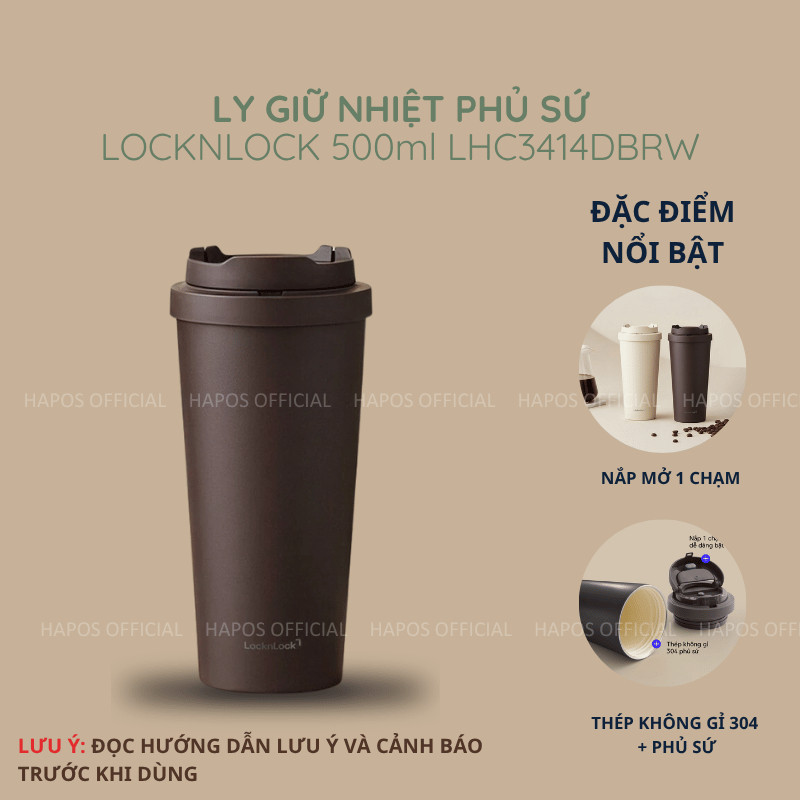 Ly giữ nhiệt phủ sứ LocknLock LHC4416 710ml, LHC4419 900ml, Chính hãng, Kèm ống hút - SIDEAL SIA