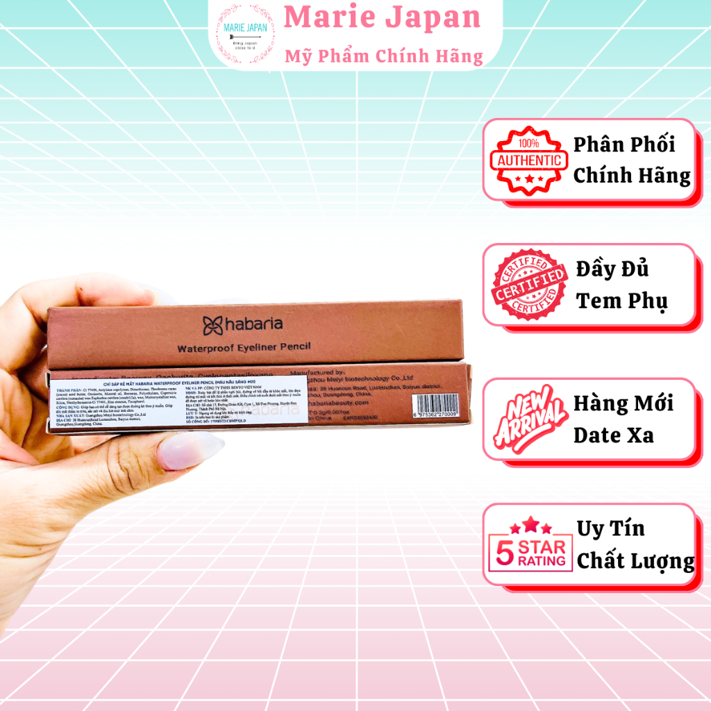 Chì Kẻ Mắt Habaria Water Proof Eyeliner Pencil Siêu Mảnh Không Trôi Chống Thấm Nước