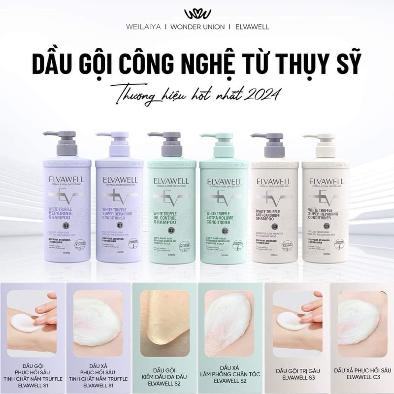 Dầu Gội Xả Phục Hồi Giảm Gàu, Rụng, Kiểm Soát Dầu ELVAWELL White Truffle 500ML - 1000ML