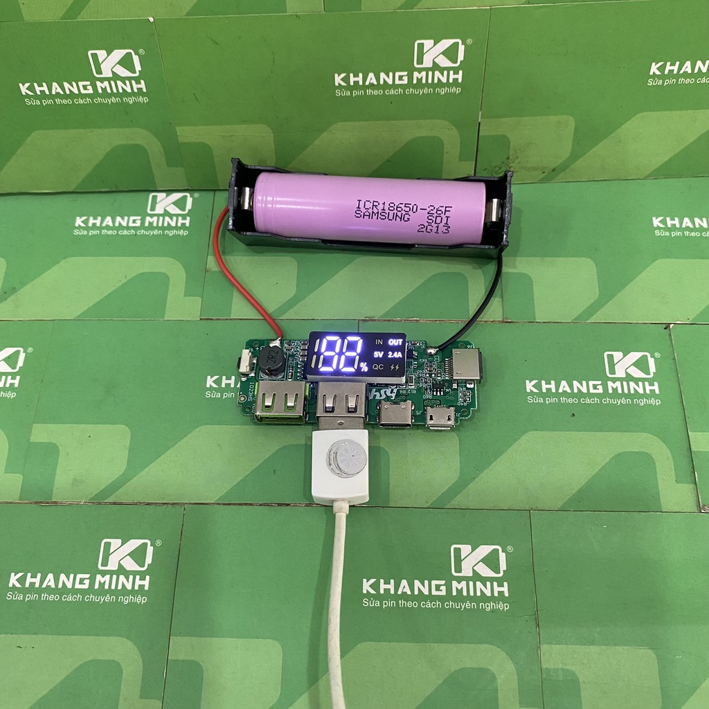 Mạch sạc nhanh pin dự phòng 2 cổng out QC và 5V-2.4A có màn hình LED, Type C