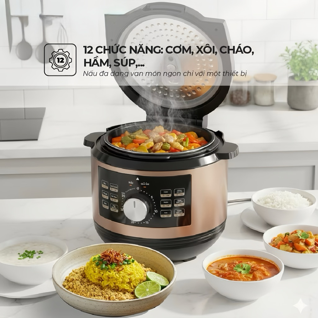 NỒI ÁP SUẤT ĐIỆN ĐA NĂNG SUNHOUSE SHD1656 - Dung tích 6 lít, Hàng chính hãng bảo hành 1 năm
