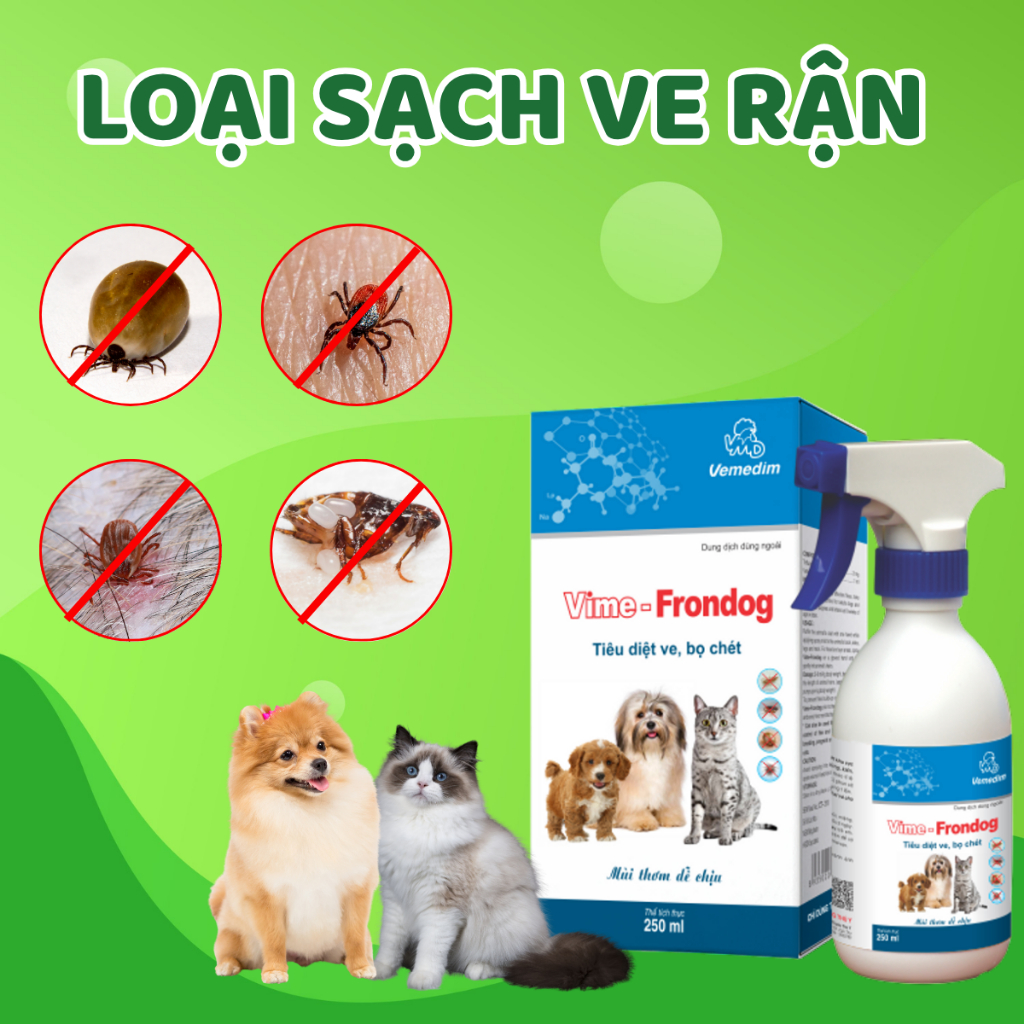 Chai Xịt Ve Rận Chó Mèo Vime Frondog - Lọ Xịt Bọ Chét Chó Rận Mèo TD Pet Care