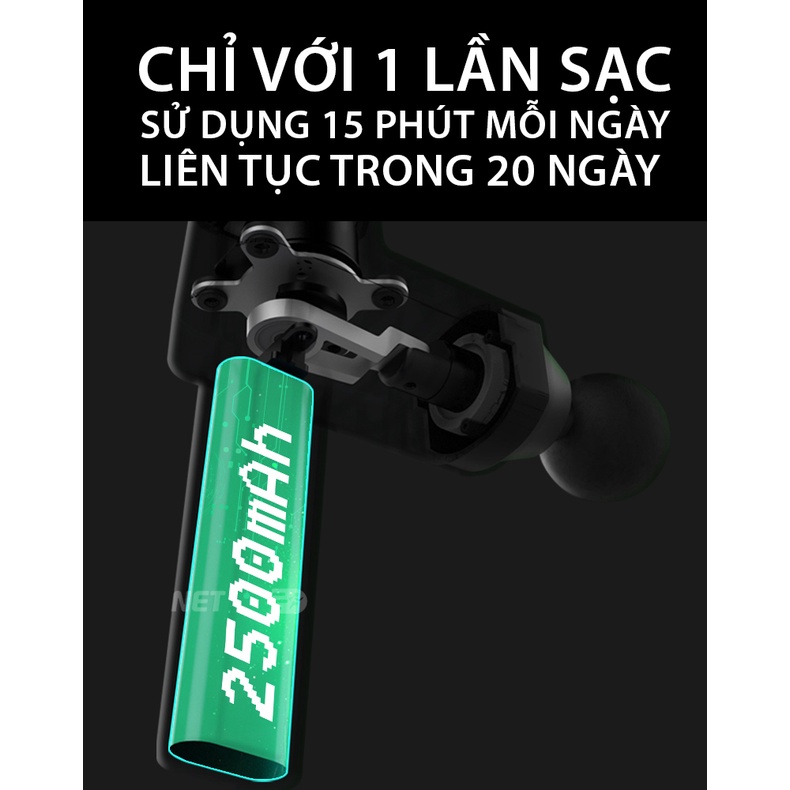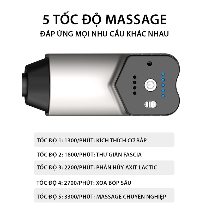 Máy massage cầm tay BOOSTER T, Súng massage gun thư giãn cơ bắp trị liệu đau nhức mỏi -135W, 6 Đầu, 5 Tốc Độ Sạc Pin